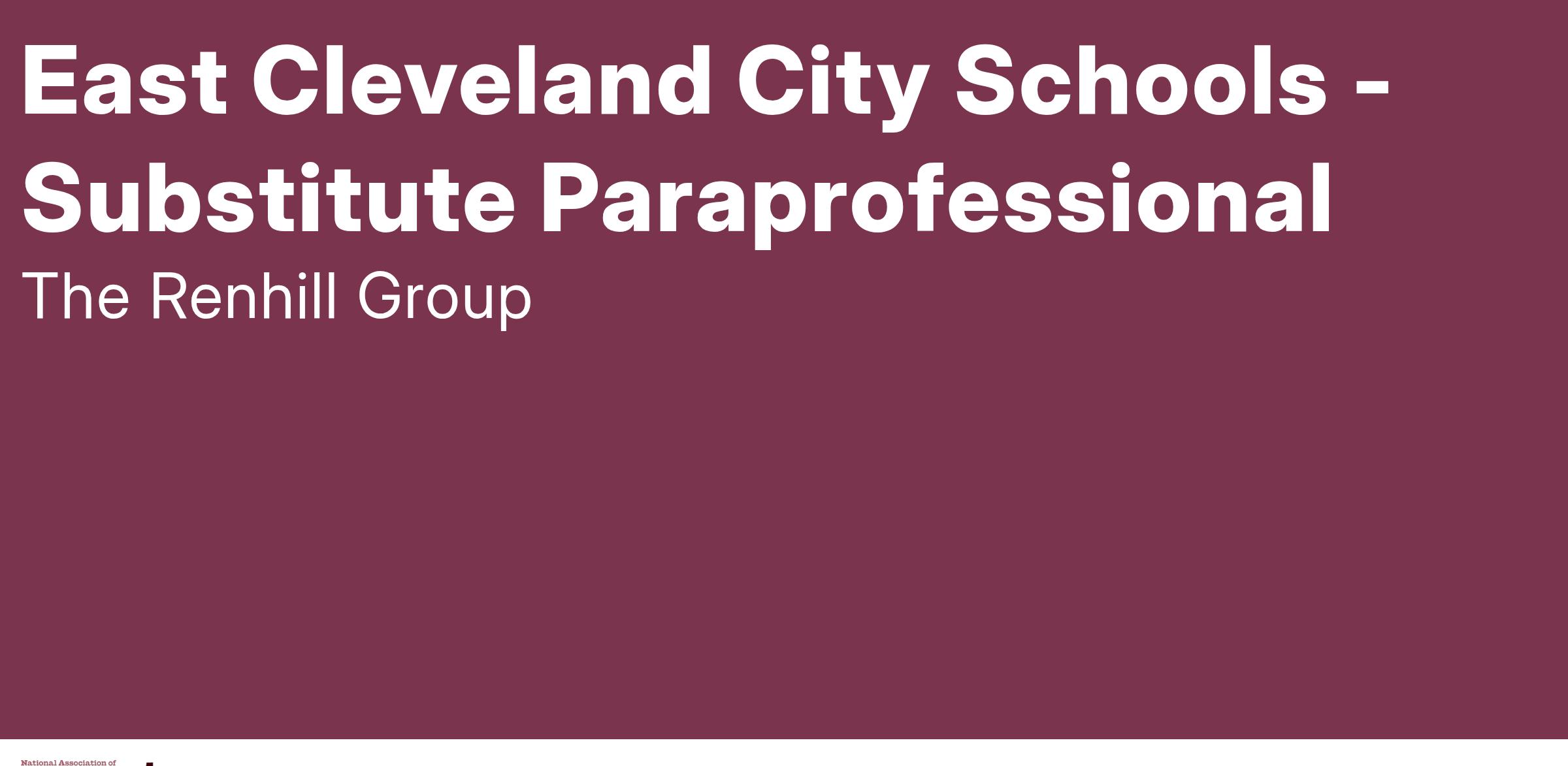 Renhill Group is currently looking for caring, compassionate individuals to work on a substitute (part-time, on-call) basis as a Paraprofessional at East Cleveland City Schools in East Cleveland, Ohio for the 2025-2026 school year.