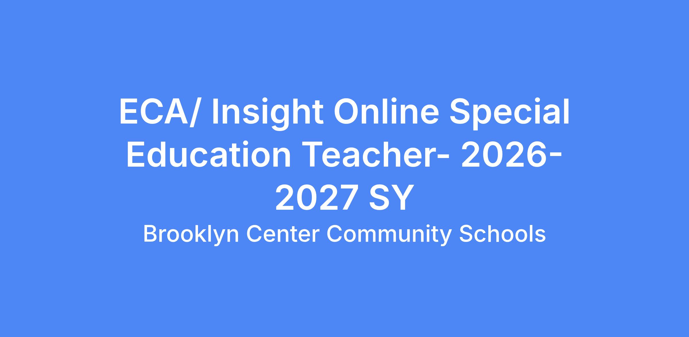 The Brooklyn Center Community School (BCCS) District is seeking a Special Education teacher to join our Early College Academy and Insight Online teams for the 2026-27 school year. This position is 0.6 FTE Early College Academy and 0.4 FTE Insight Online School.