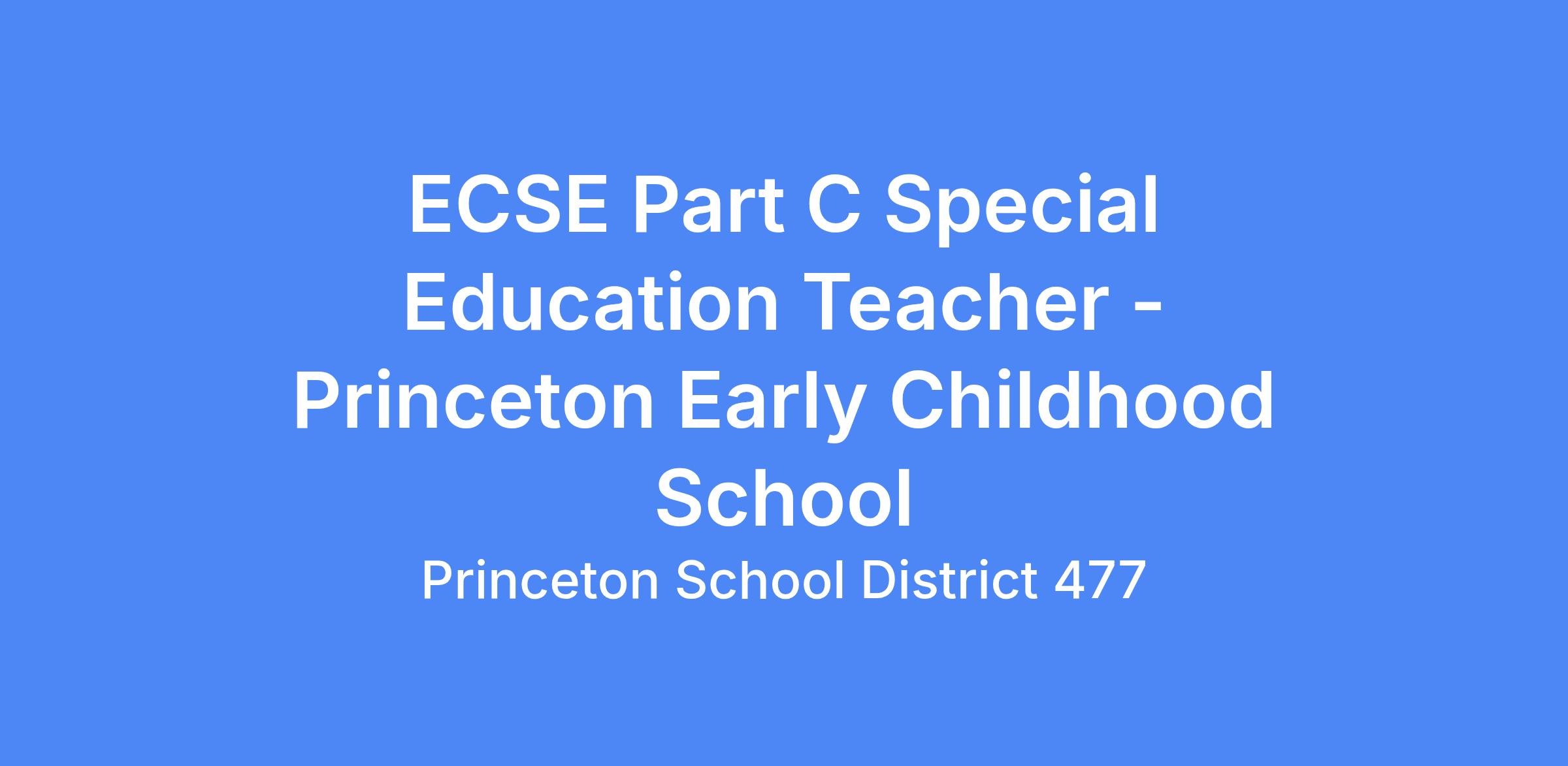 Special Education Teacher - Princeton Early Childhood Part C (ECSE)