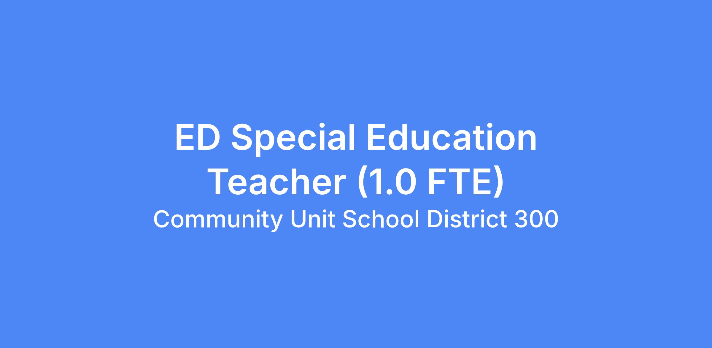 Full-time High School ED Special Education Teacher to educate students with a wide variety of disabilities in all academic areas as well as fulfilling case management duties.