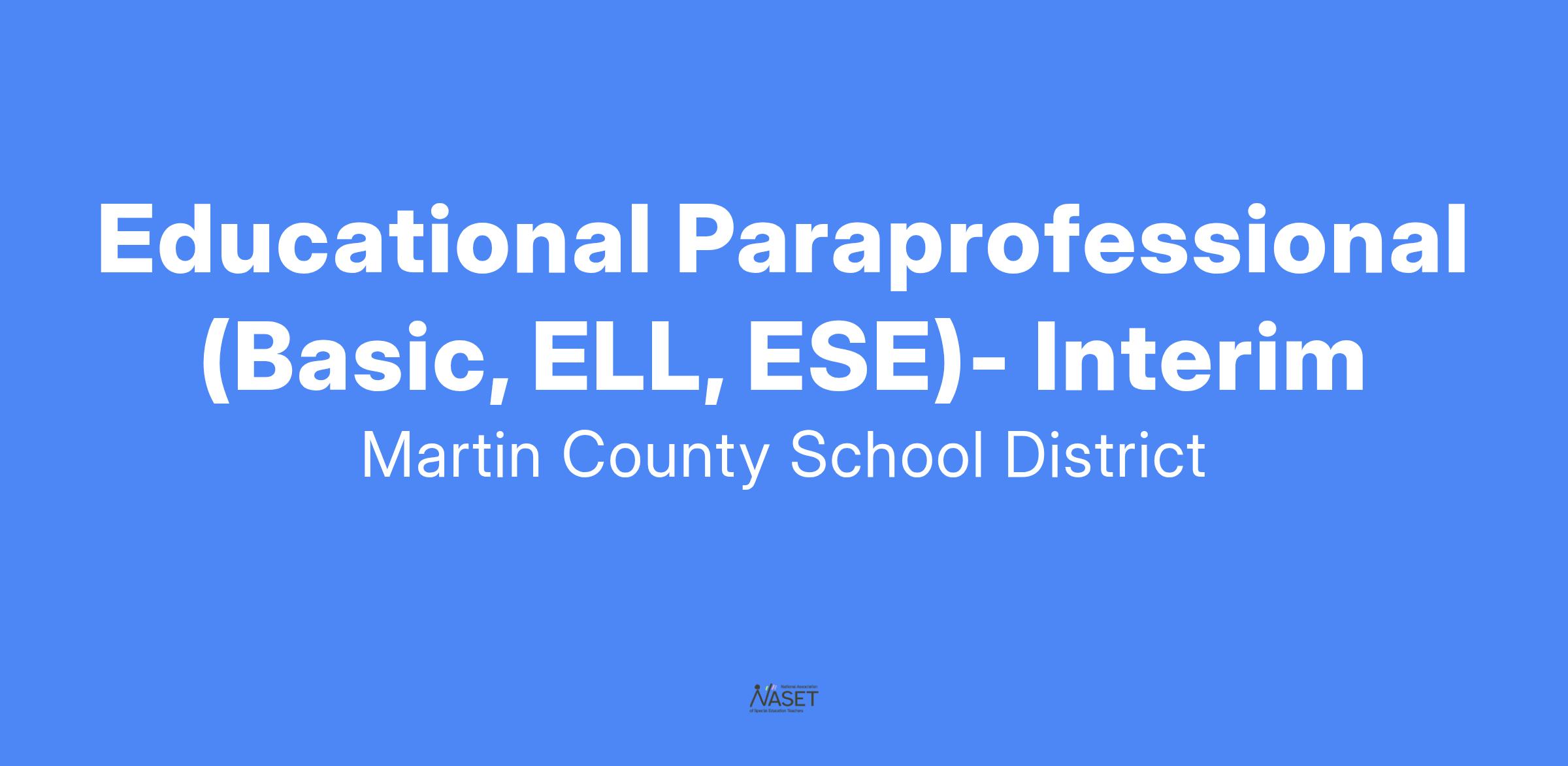 Educational Paraprofessional (Basic, ELL, ESE)- Interim