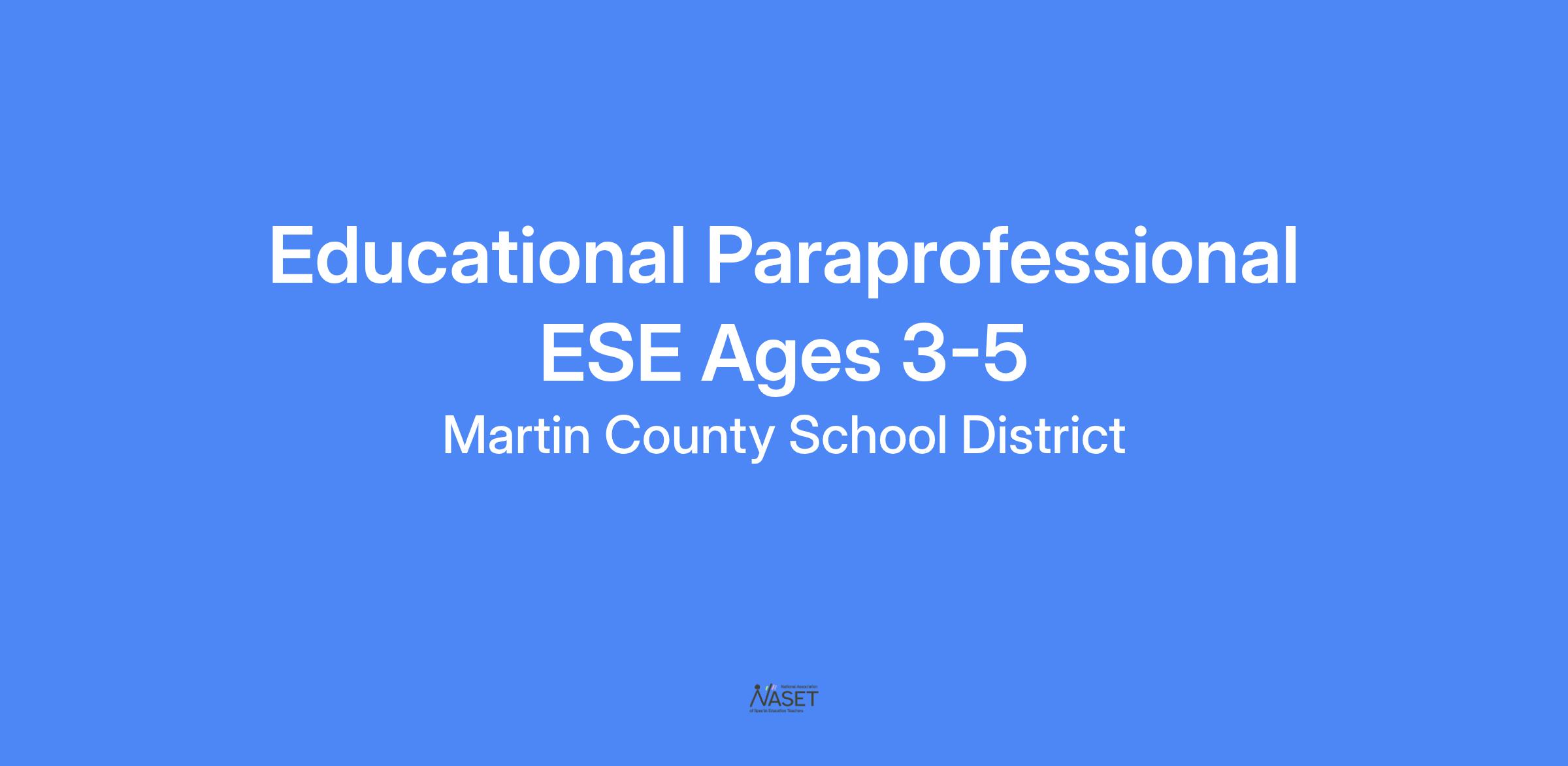 Educational Paraprofessional ESE Ages 3-5