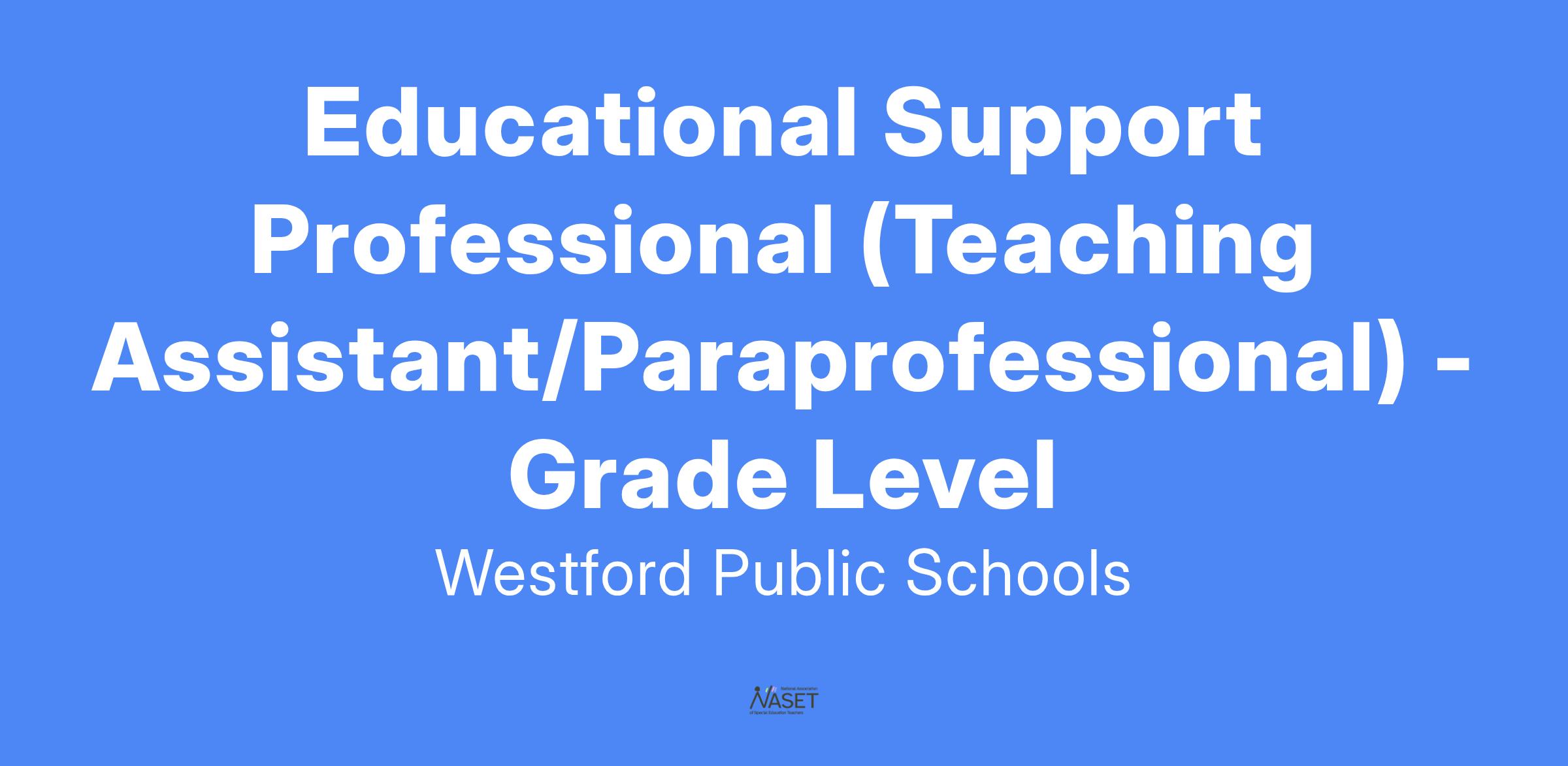 Educational Support Professional (Teaching Assistant/Paraprofessional) working daily with students in the inclusion environment.They must be able to work effectively with the Special Educator, General Educator, and service providers to fully implement students’ individual educational programs. Special Education Aides must be able to observe, collect data and report on the students of this classroom to the Special Educator in a professional manner in order to maintain the integrity of the programming which meets the students needs.