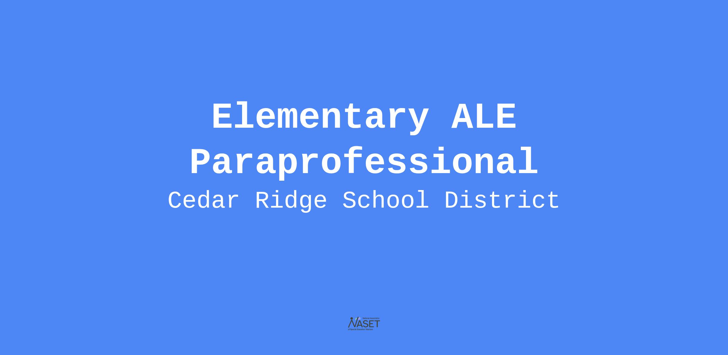 The Cedar Ridge School District is accepting applications for an Elementary ALE Paraprofessional for the 2025-2026 school year. Minimum qualifications: Associates degree or 60 college credit hours OR take and pass the ParaPro Assessment exam. For additional information, please contact Abbi Limbaugh at 870-201-2577 or Abbi.Limbaugh@cedarwolves.org. Applications will be accepted until the position is filled.