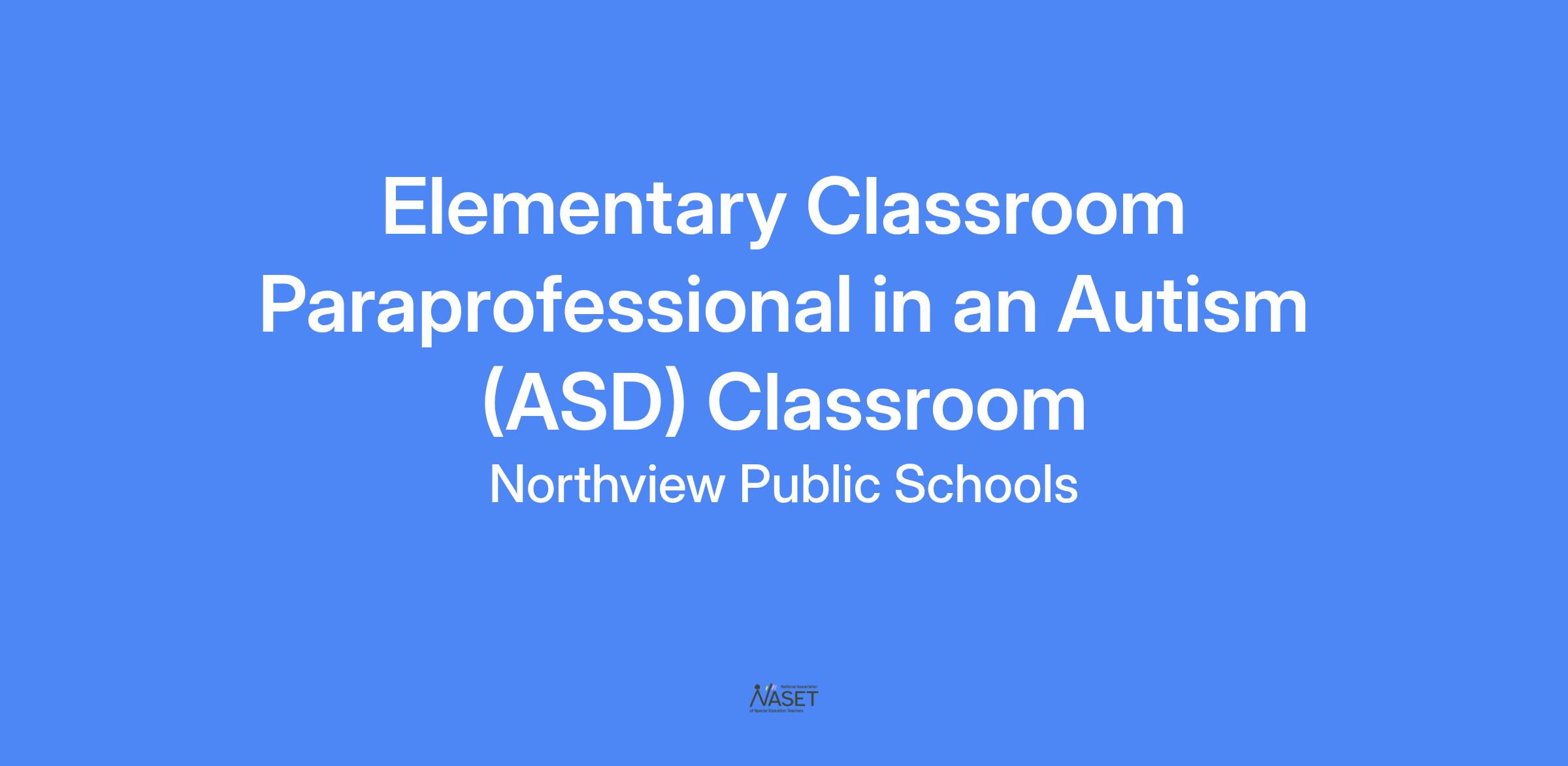Job Description: Paraprofessional for an Elementary DK-4 Classroom at North Oakview in an Autism (ASD) Classroom