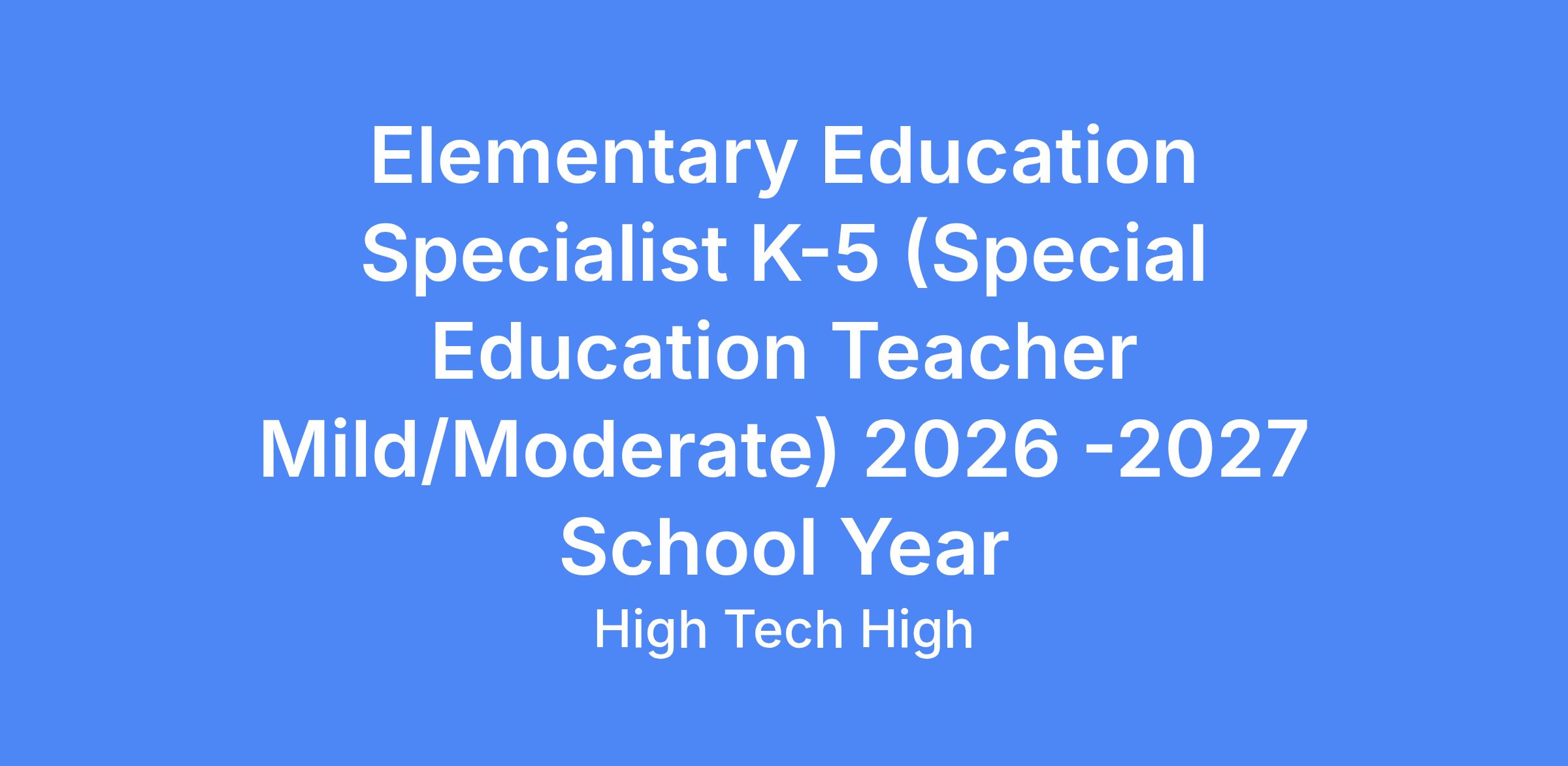 Elementary Education Specialist (Special Education Teacher Mild/Moderate) 2026 -2027 School Year