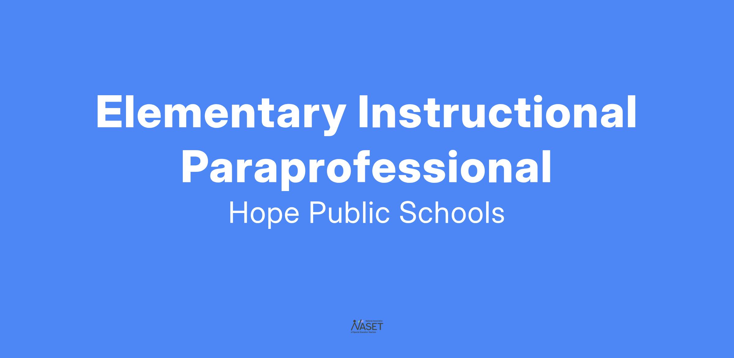 Job Posted: Elementary Instructional Paraprofessional