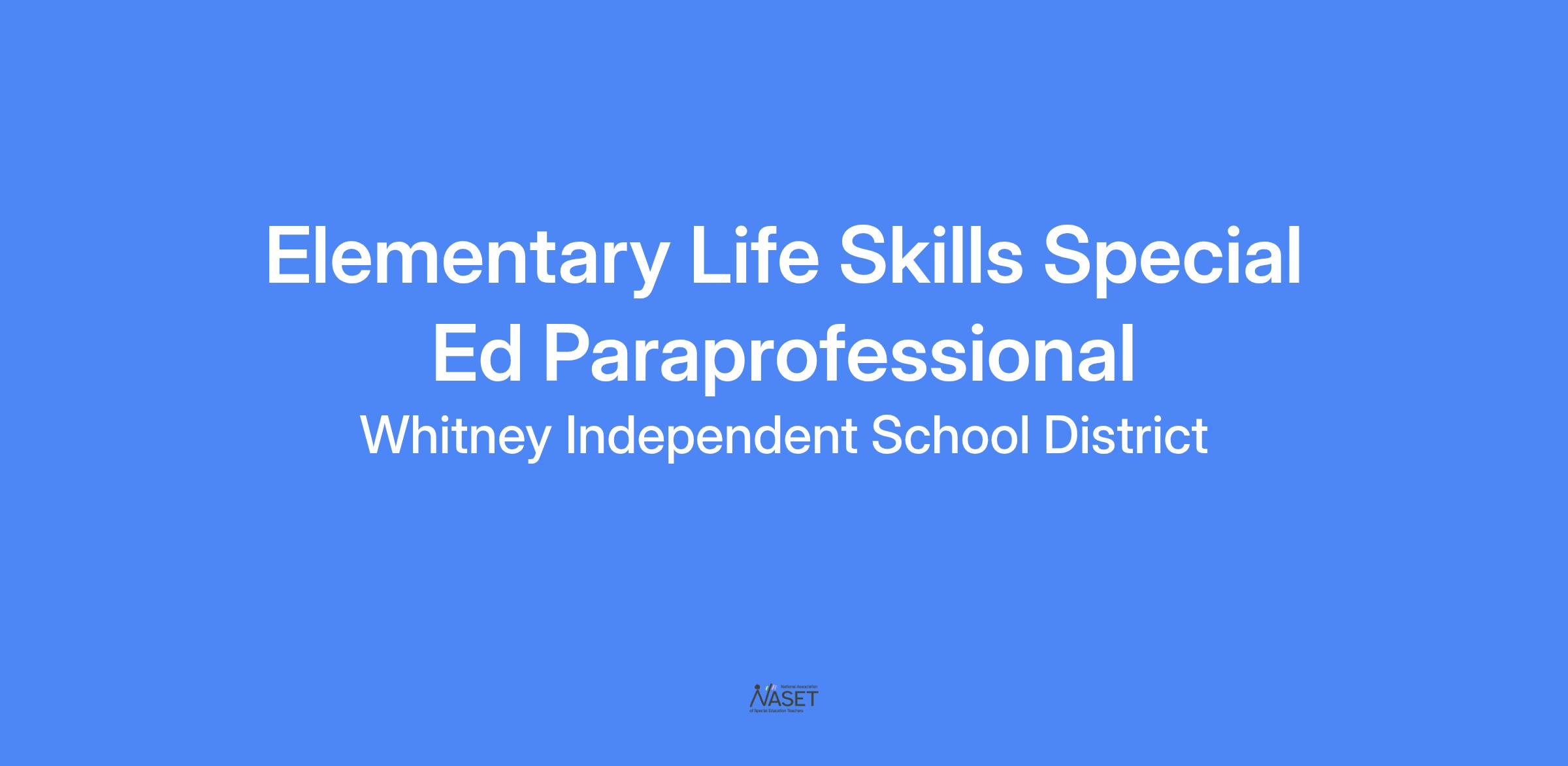 Elementary Life Skills Spec Ed Paraprofessional