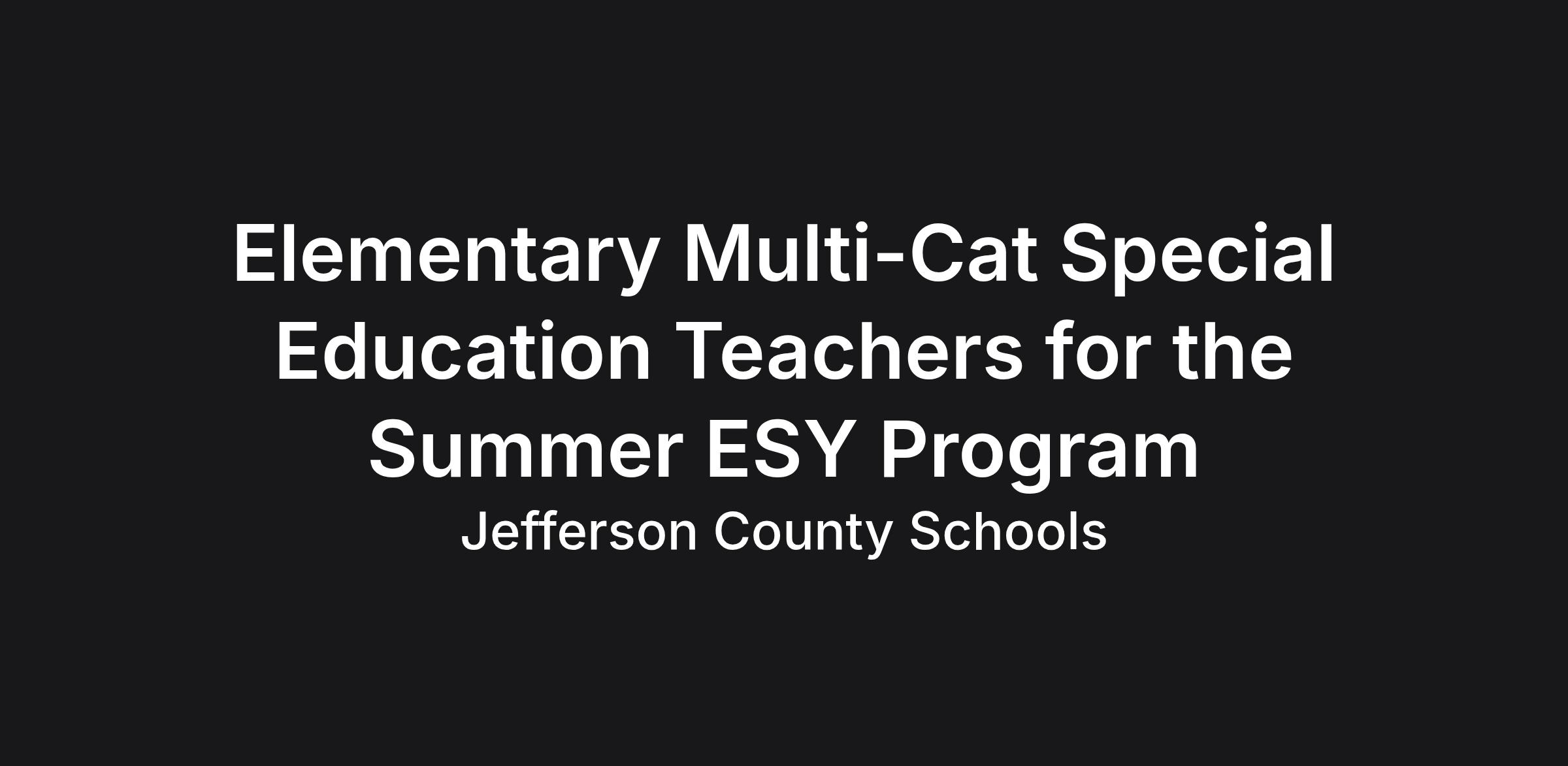POSITION: Elementary Multi-Cat Special Education Teacher for the Summer ESY Program