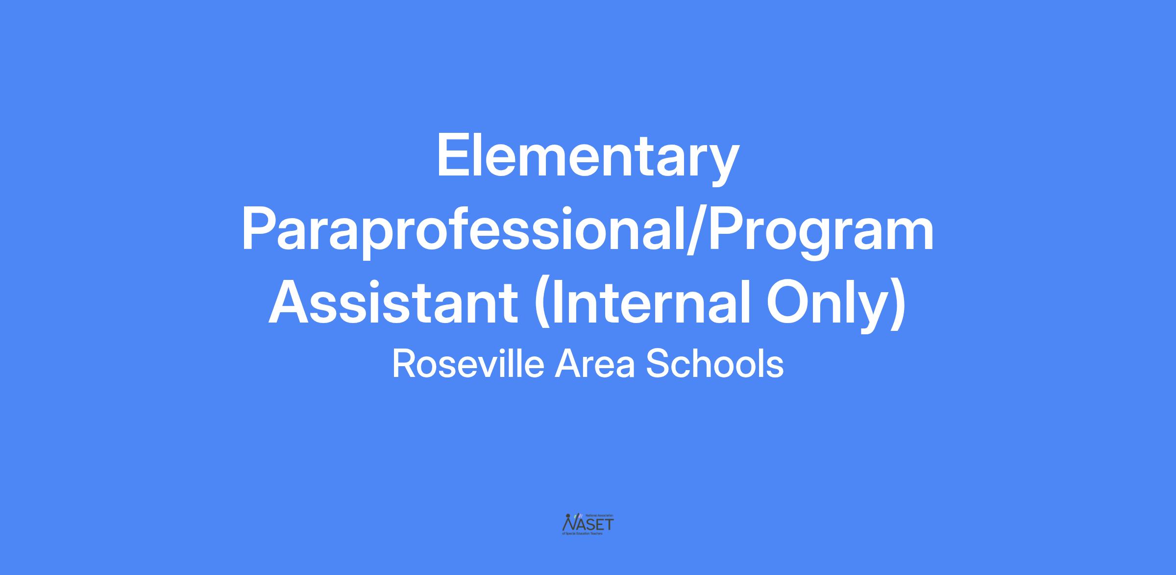 Description: Roseville Area Schools has a vacancy for a 6.25-hour position that will be 2 hours of program assistant duties and 4.25 hours of general education paraprofessional duties for the 2025-2026 school year starting November 3, 2025. This person will support the academics, belonging, and excellence of our K-6th grade students. The person is responsible for direct support to teachers, recess/lunch/bus duties, interaction with students for their choices and needs, and working collaboratively with teams to create student success plans.This position supervises and provides a leadership role in the cafeteria during lunch. It also plays an important part in executing our PBIS systems and Panther Pride.