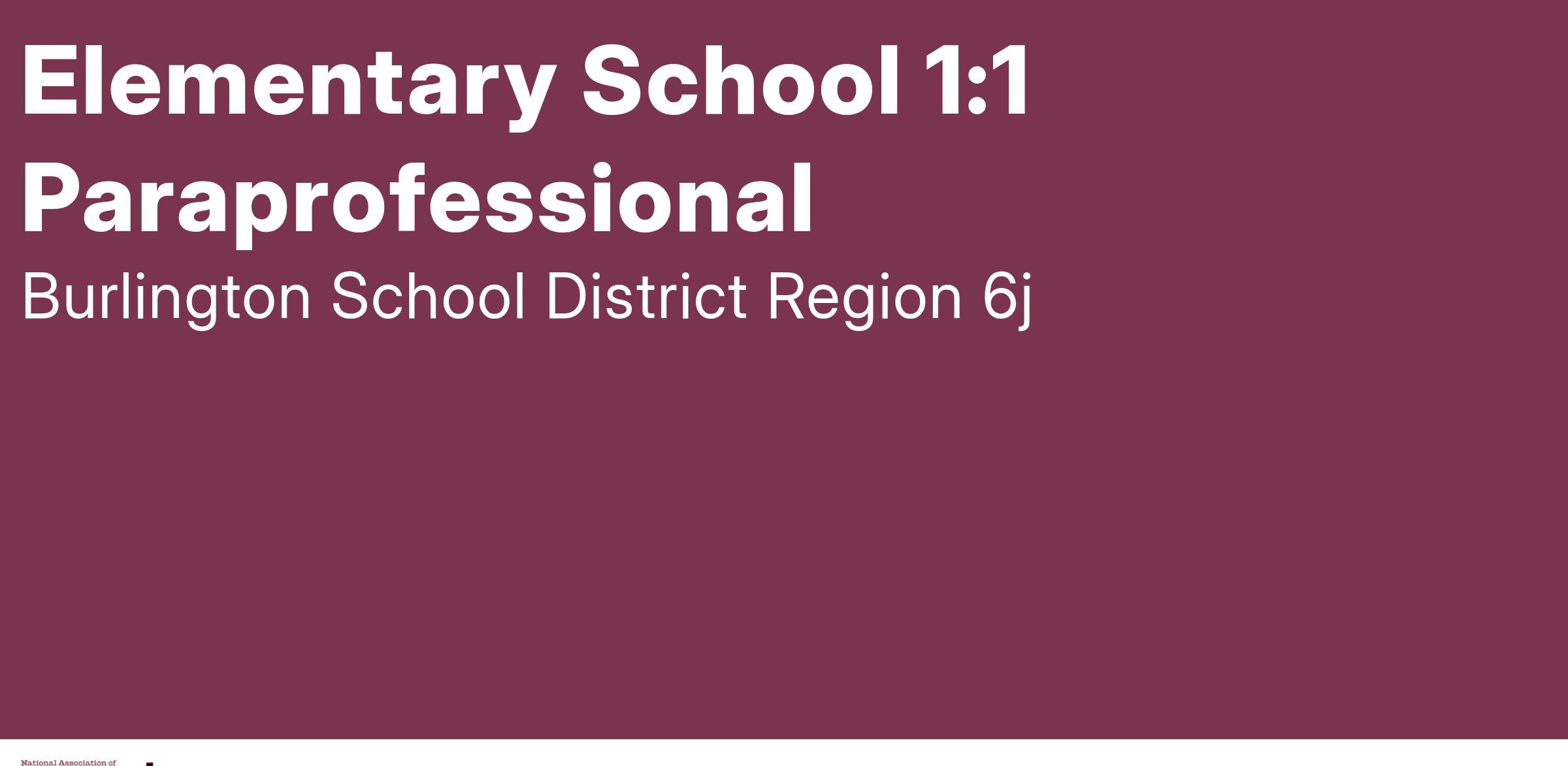 Burlington Elementary School is looking for a 1-1 Paraprofessional to work full time Monday - Thursday. Burlington is an amazing place to work, our class sizes are small and our teachers work together to meet the needs of all our students. We value hard work and high standards of excellence. We offer a competitive benefit package including a single health insurance, vision insurance and a life insurance policy fully paid by the district. Salary dependant upon experience.