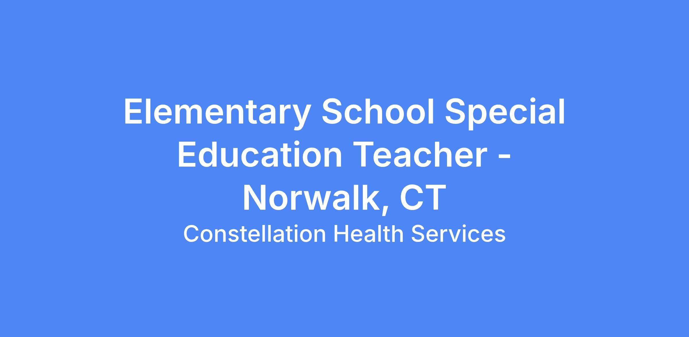 DescriptionConstellation Kids is seeking a Special Education Teacher for the Norwalk, CT School System!