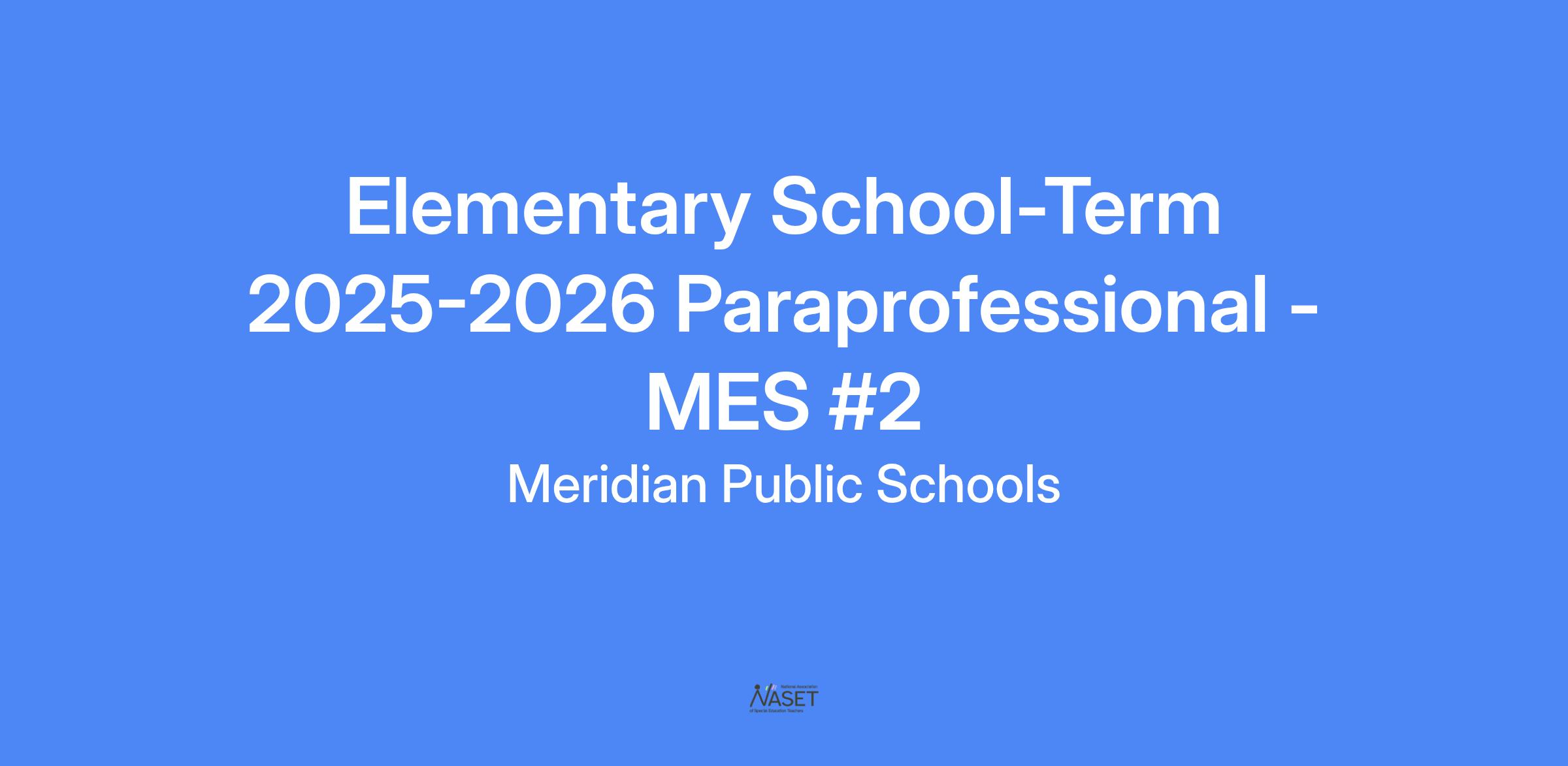 JOB POSTING Meridian Public Schools SCHOOL-TERM ELEMENTARY PARAPROFESSIONAL - MES #2 The following support personnel position is for the remainder of the 2025-2026 school year.