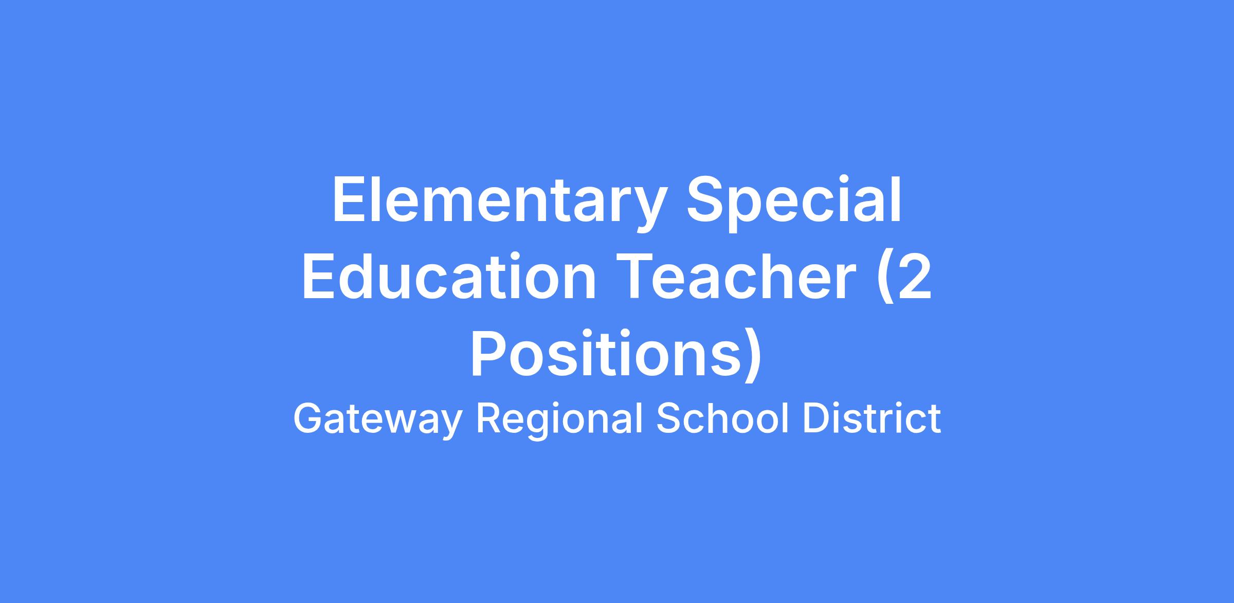 Elementary Special Education Teacher (2 positions available)