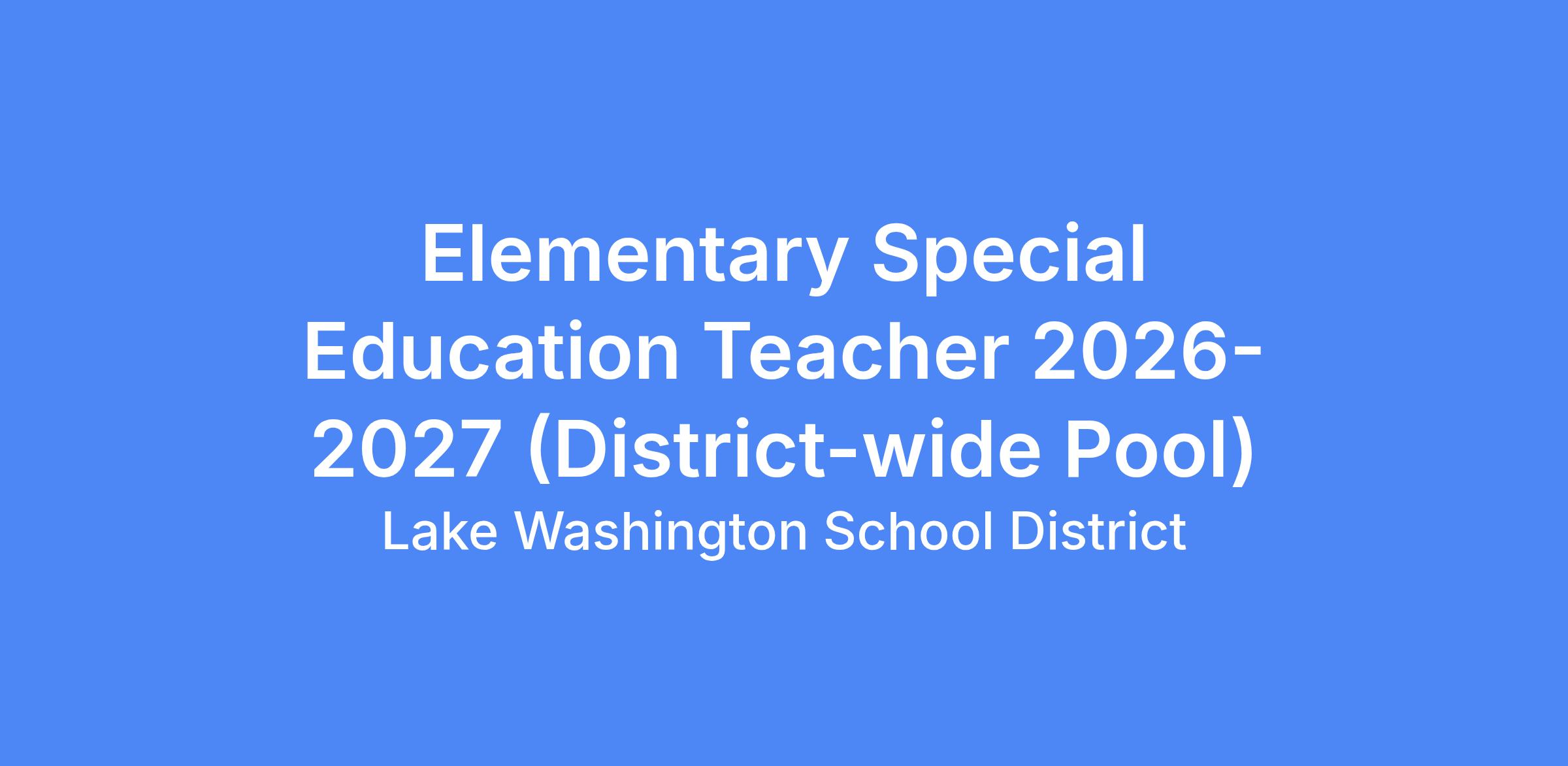 Lake Washington School District is looking for qualified Elementary Special Education Teacher candidates for positions in the 2026-2027 school year. This general posting will be used to generate an applicant pool for these positions. As specific openings are identified, building administrators will contact you if you are selected for an interview.