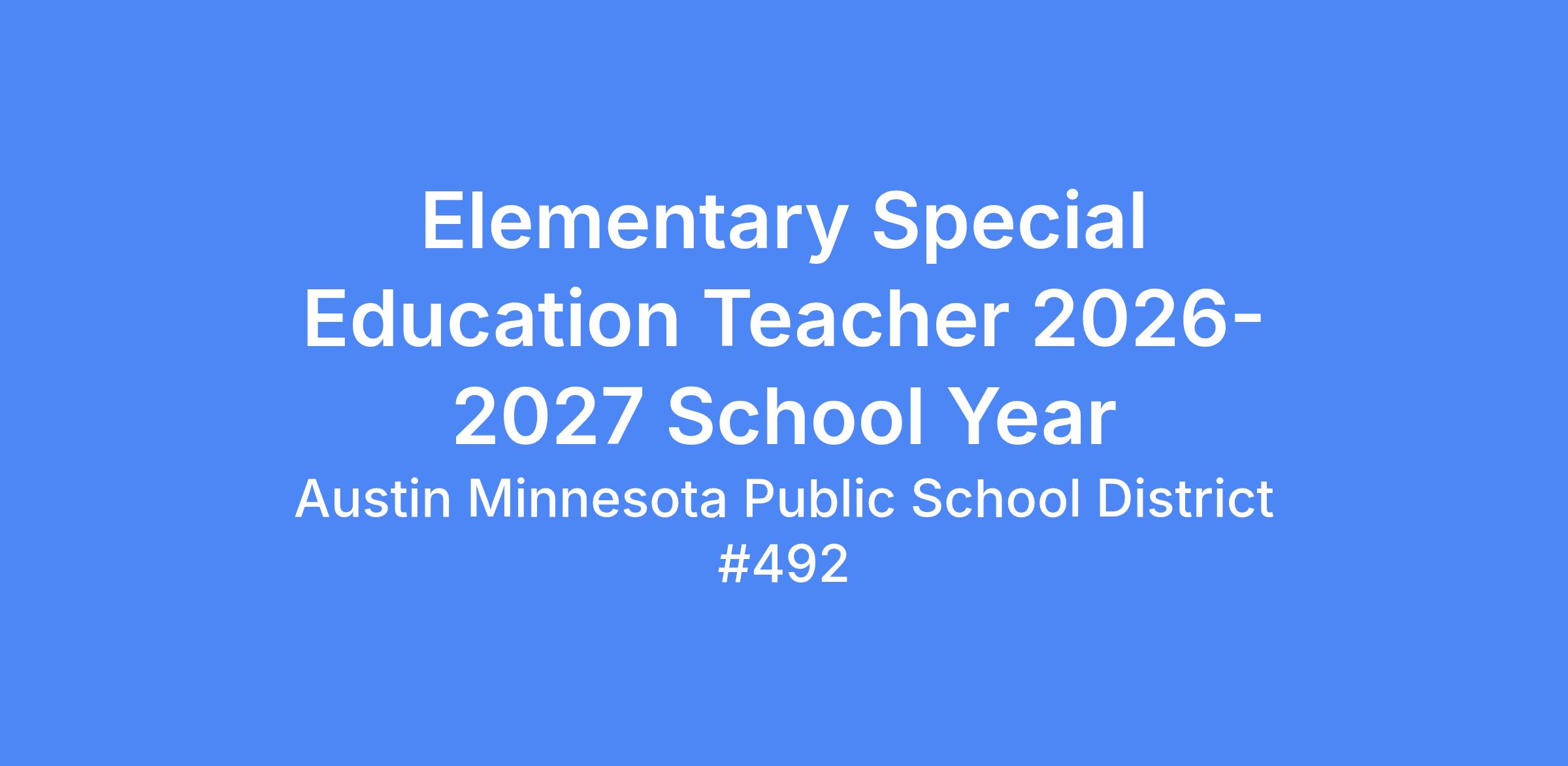 The Austin Public School District is seeking to hire a Full Time 1.0 FTE Elementary Special Education Teacher effective for the 2026-2027 school year.