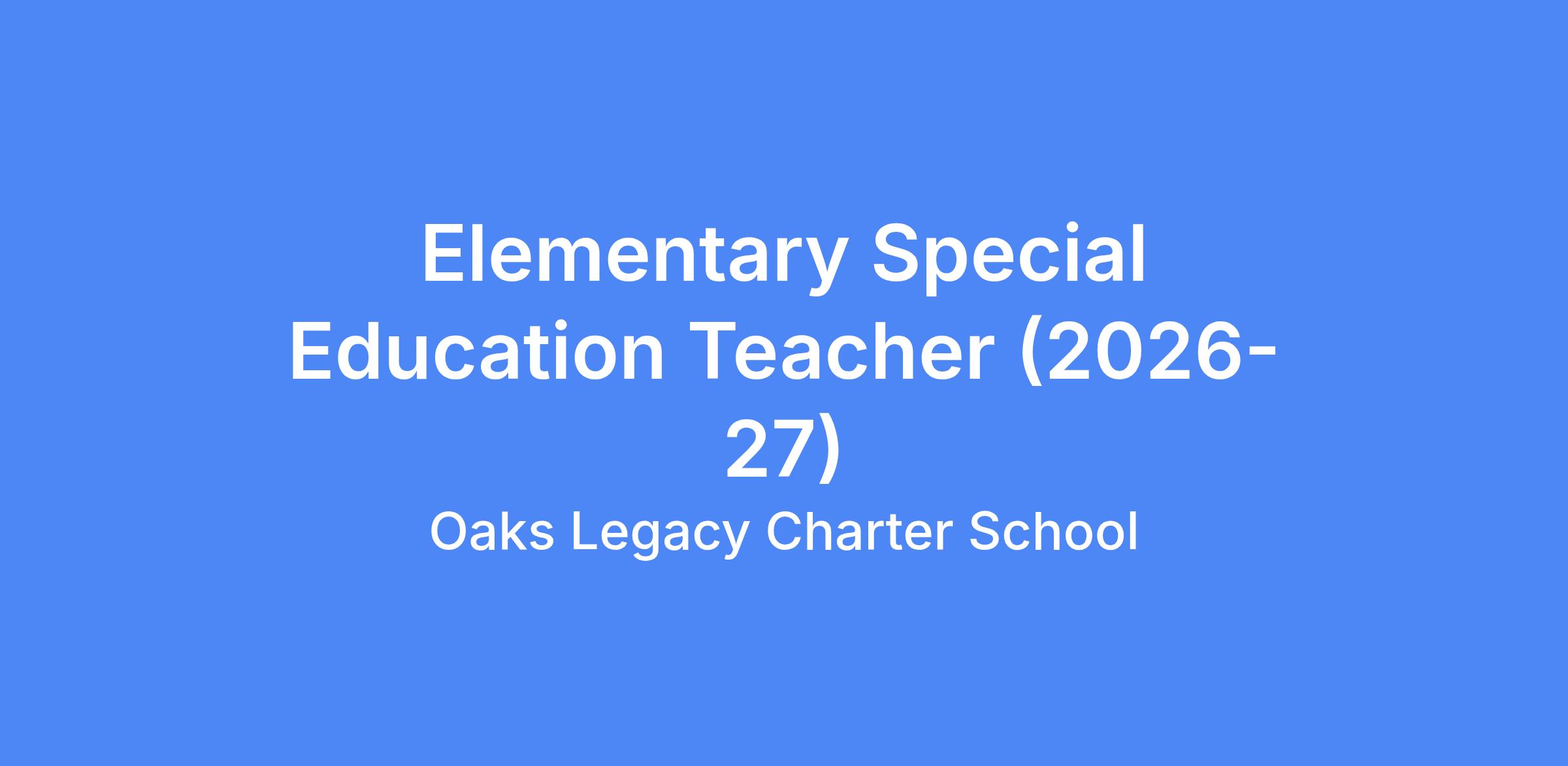 Great Oaks Legacy Charter School is seeking a dynamic, mission-aligned educator to join our team as an Elementary Special Education Teacher for the (2026-27) academic year.