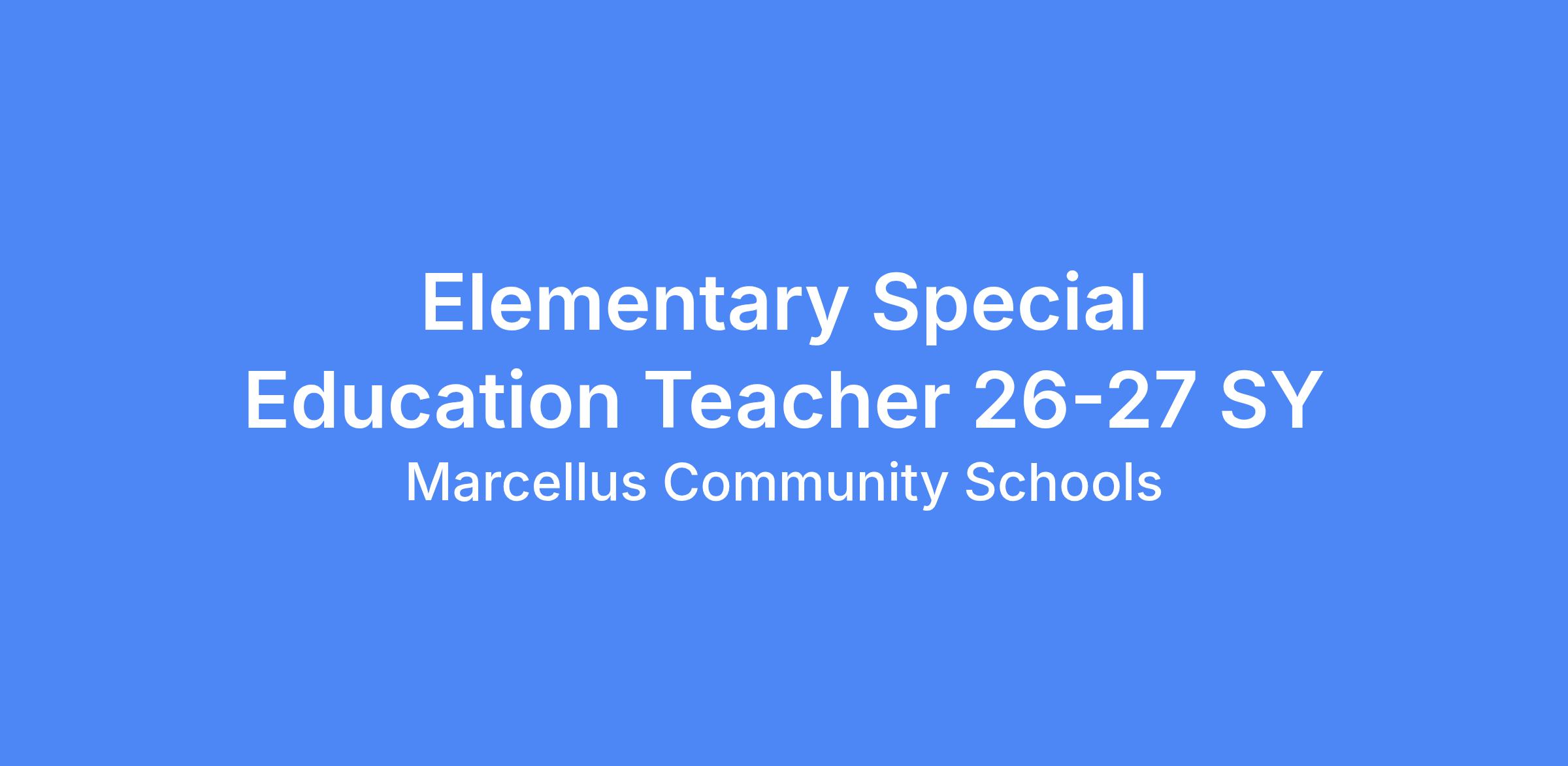 Marcellus Elementary School is seeking a dedicated and passionate Elementary Special Education Teacher for the 2026-2027 school year. This full-time position involves working with students who have diverse learning needs and requires a commitment to fostering an inclusive and supportive classroom environment. The ideal candidate will be skilled in developing individualized education plans (IEPs), implementing specialized instructional strategies, and collaborating with parents, staff, and support personnel to enhance student learning and development.