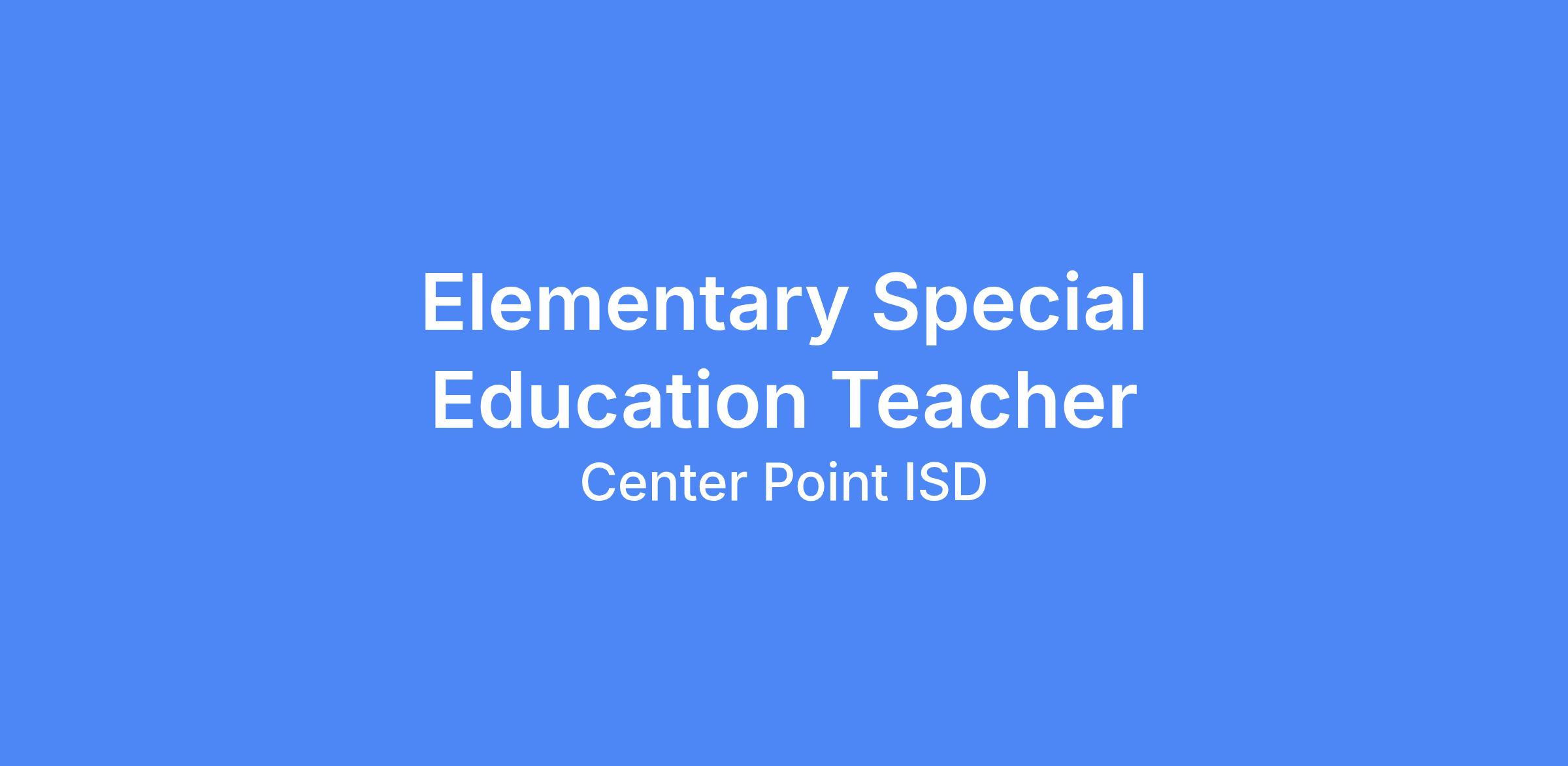 Center Point ISD is accepting applications for an Elementary Special Education Teacher.