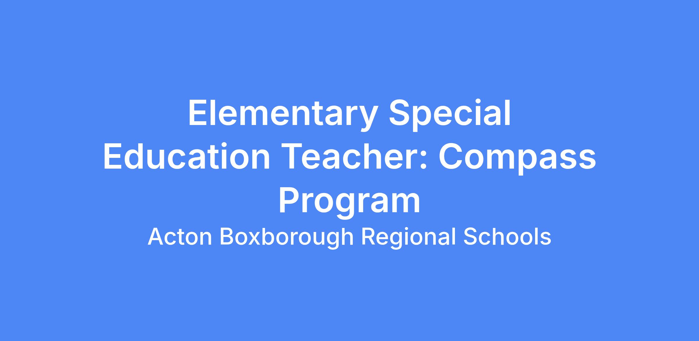 We are seeking a special educator to work in our Compass program. The Compass program is part of a K-12 continuum of services. The Compass Program offers students a safe and structured continuum of therapeutic supports and specialized instruction to foster social and/or emotional development across all settings while accessing rigorous academic experiences. The Compass Program explicitly teaches positive self-management, self-awareness, social awareness, relationship skills, and responsible decision-making to promote independence and personal growth.