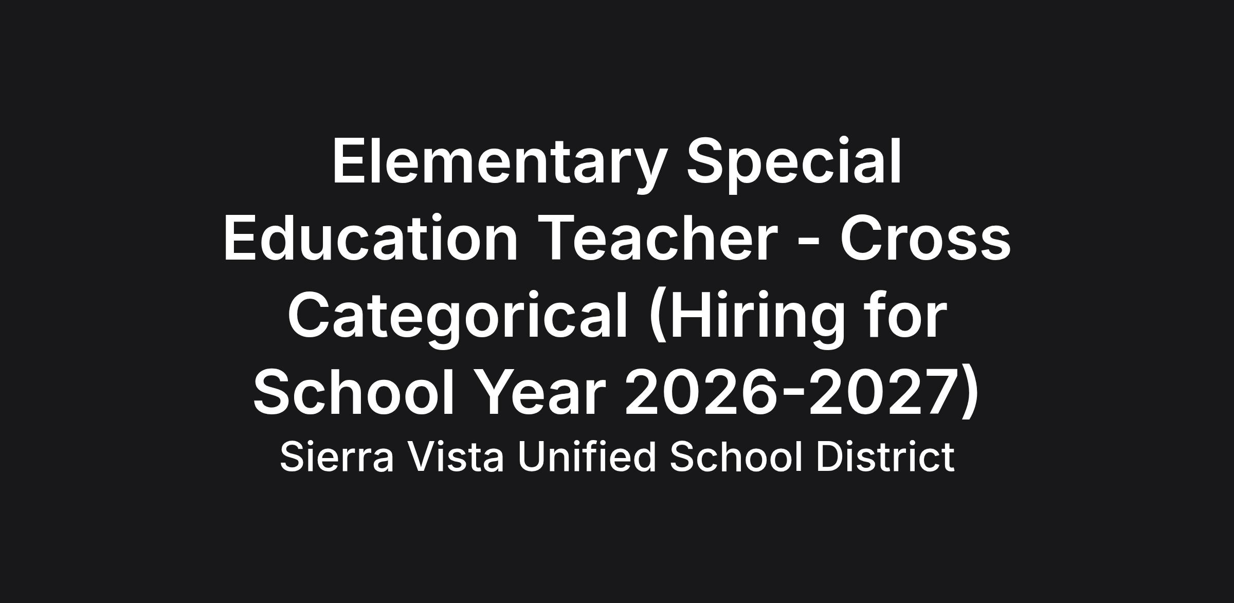 Located in beautiful southeast Arizona, Sierra Vista Unified School District is seeking passionate, dedicated educators to join our team!