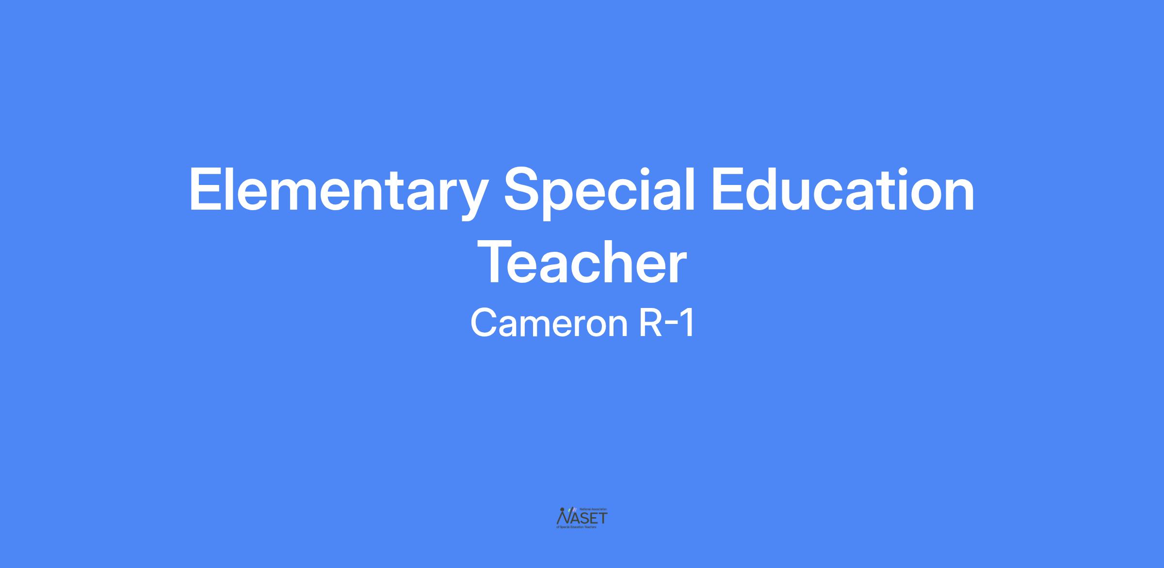 The Cameron R-1 School District is accepting applications for an Elementary Special Education Teacher for the 2026-2027 school year. Primary responsibilities will be to provide instruction and a learning environment that will enable each student to increase skills appropriate to age, grade level, and individual capacity. The teacher will be responsible to plan and implement daily instruction to assigned students, work on a team with other teachers, communicate effectively with students, staff and parents, complete special education paperwork, hold IEP meetings, and complete other duties as assigned. It is preferred that desired applicants hold a valid Missouri teaching certificate in special education and/or elementary education.