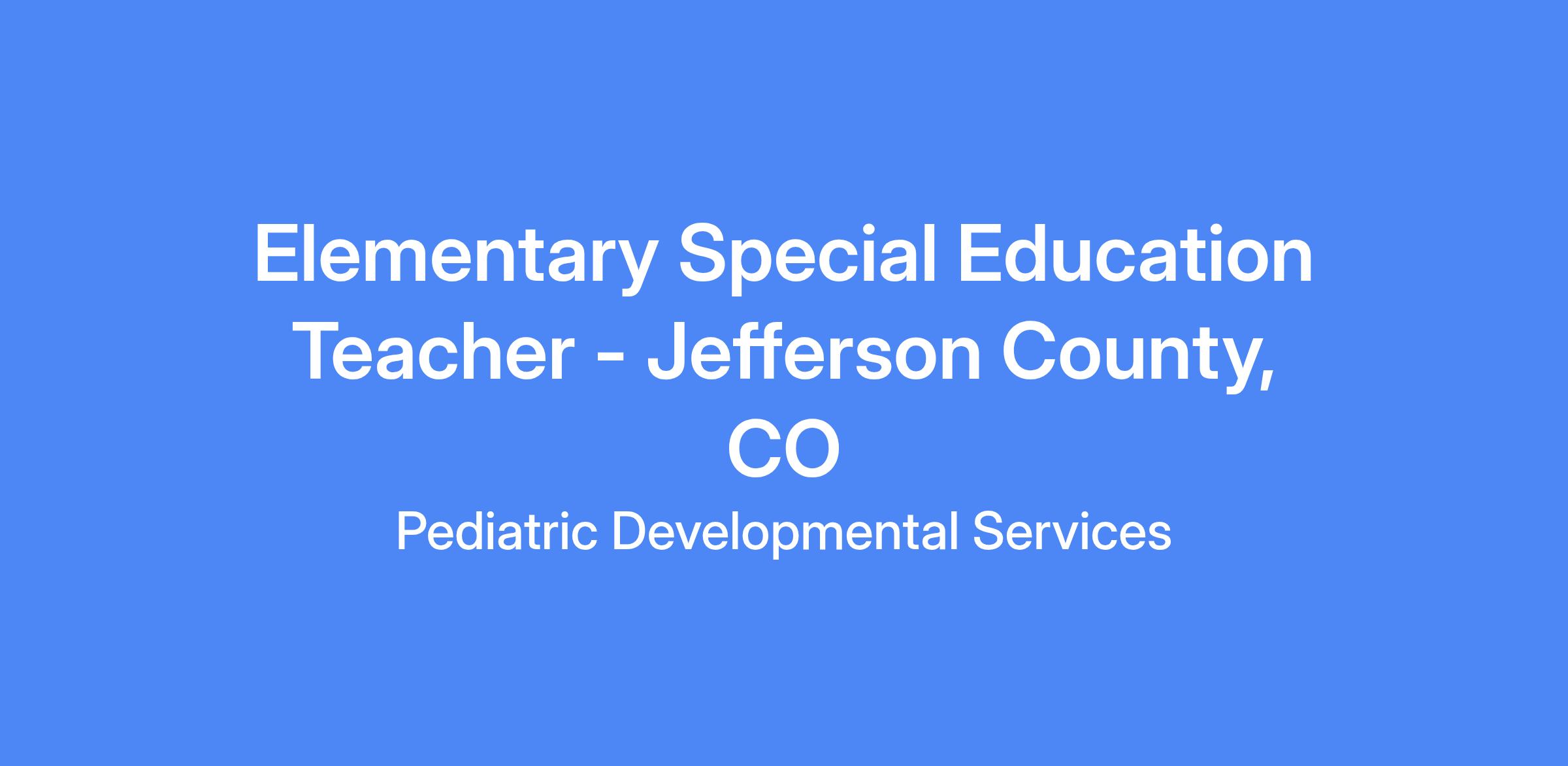 ***Colorado State Special Services Provider OR State Teacher's License required**