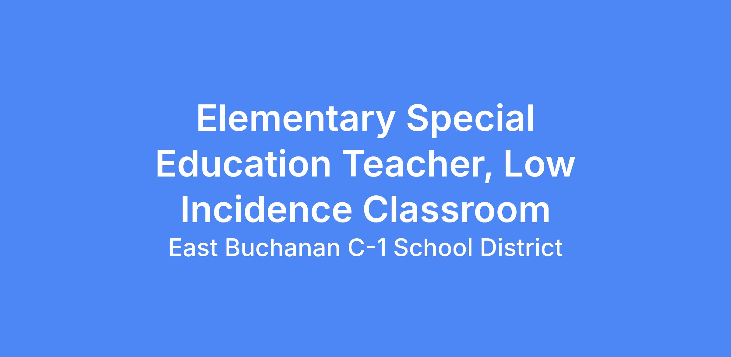 Job Title: Special Education Teacher, Low Incidence Classroom