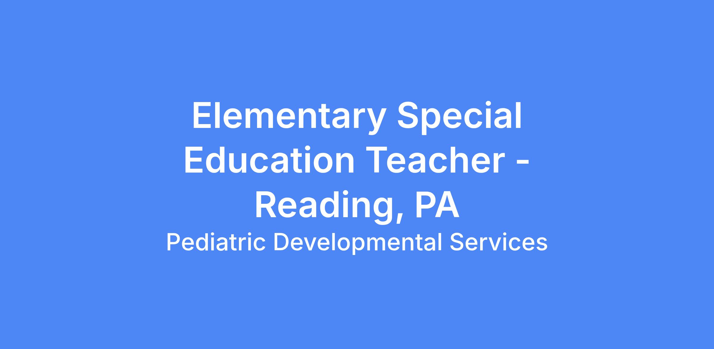 Elementary Special Education Teacher - Reading, PA