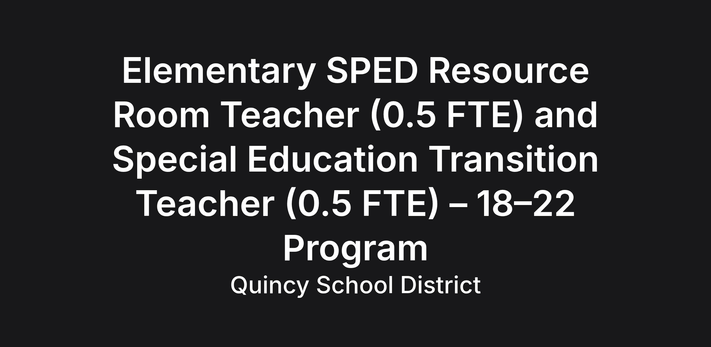 Special Education Transition Teacher (0.5 FTE) – 18–22 Program (QHS)