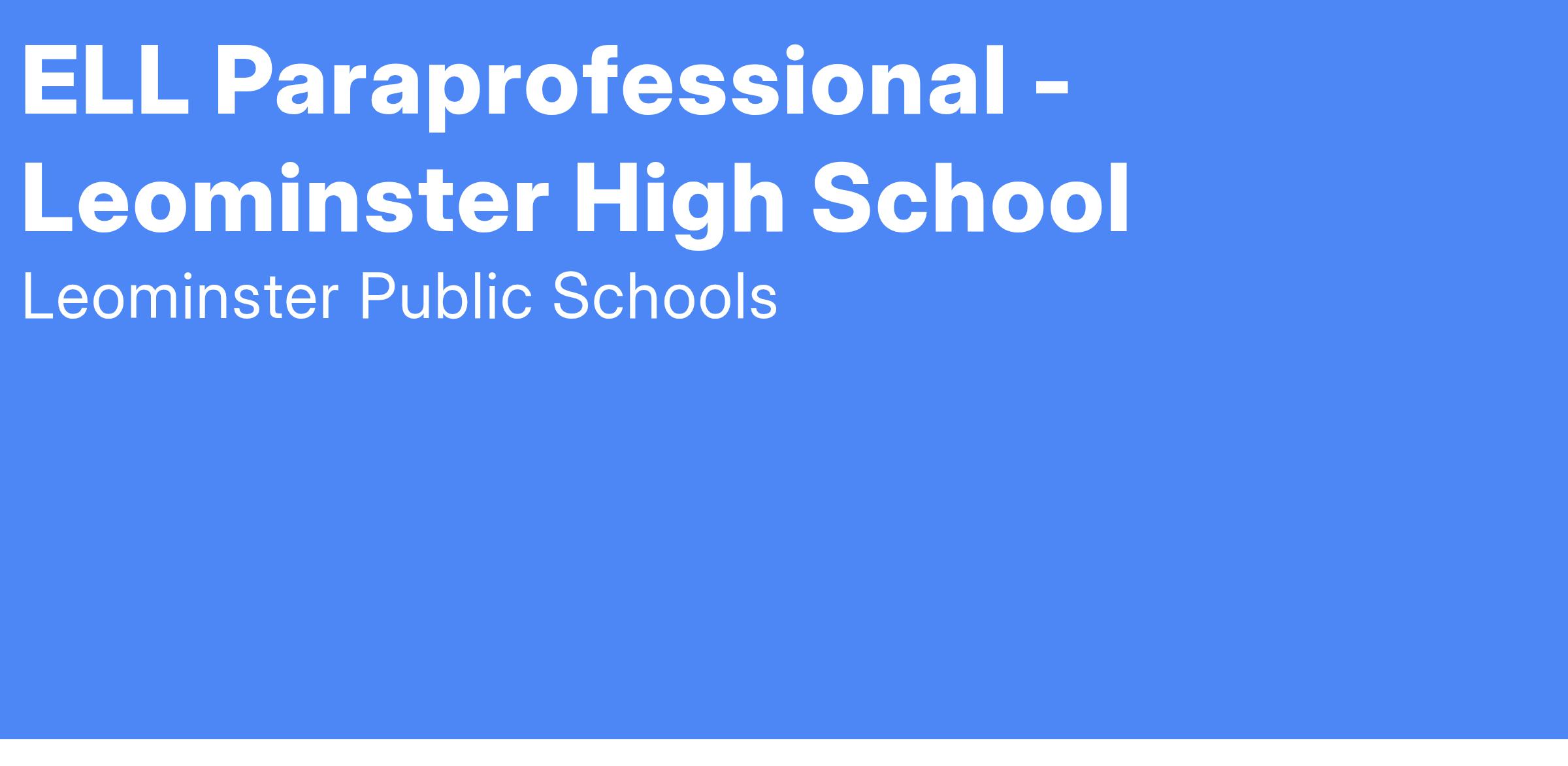 LHS is seeking a paraprofessional to provide classroom support for our English Learners.
