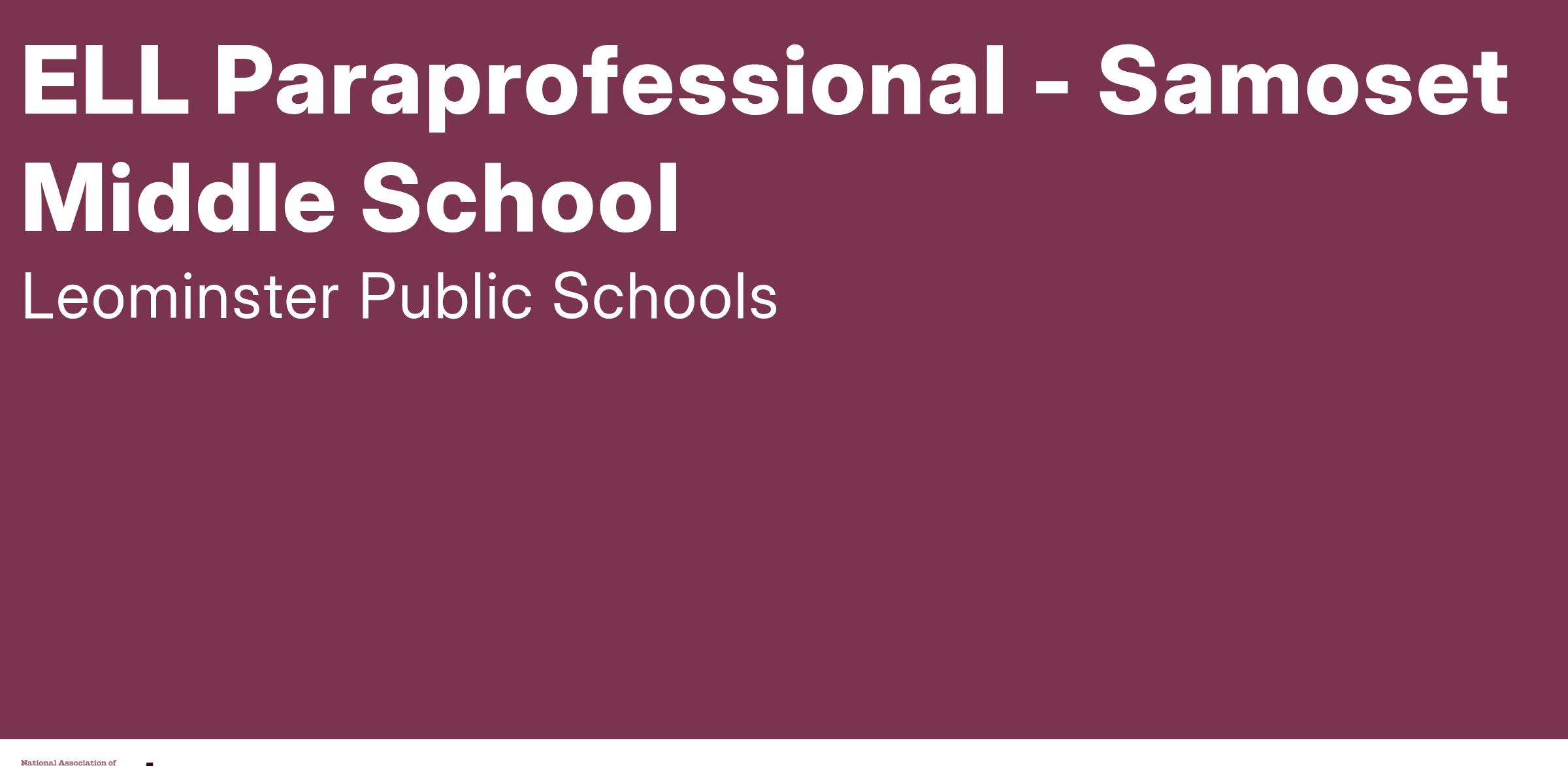 To serve as an integral member of the instructional team to provide services to individual students who participate in the Full Immersion English Language Learners ("ELL") Program provided by the Leominster Public Schools.