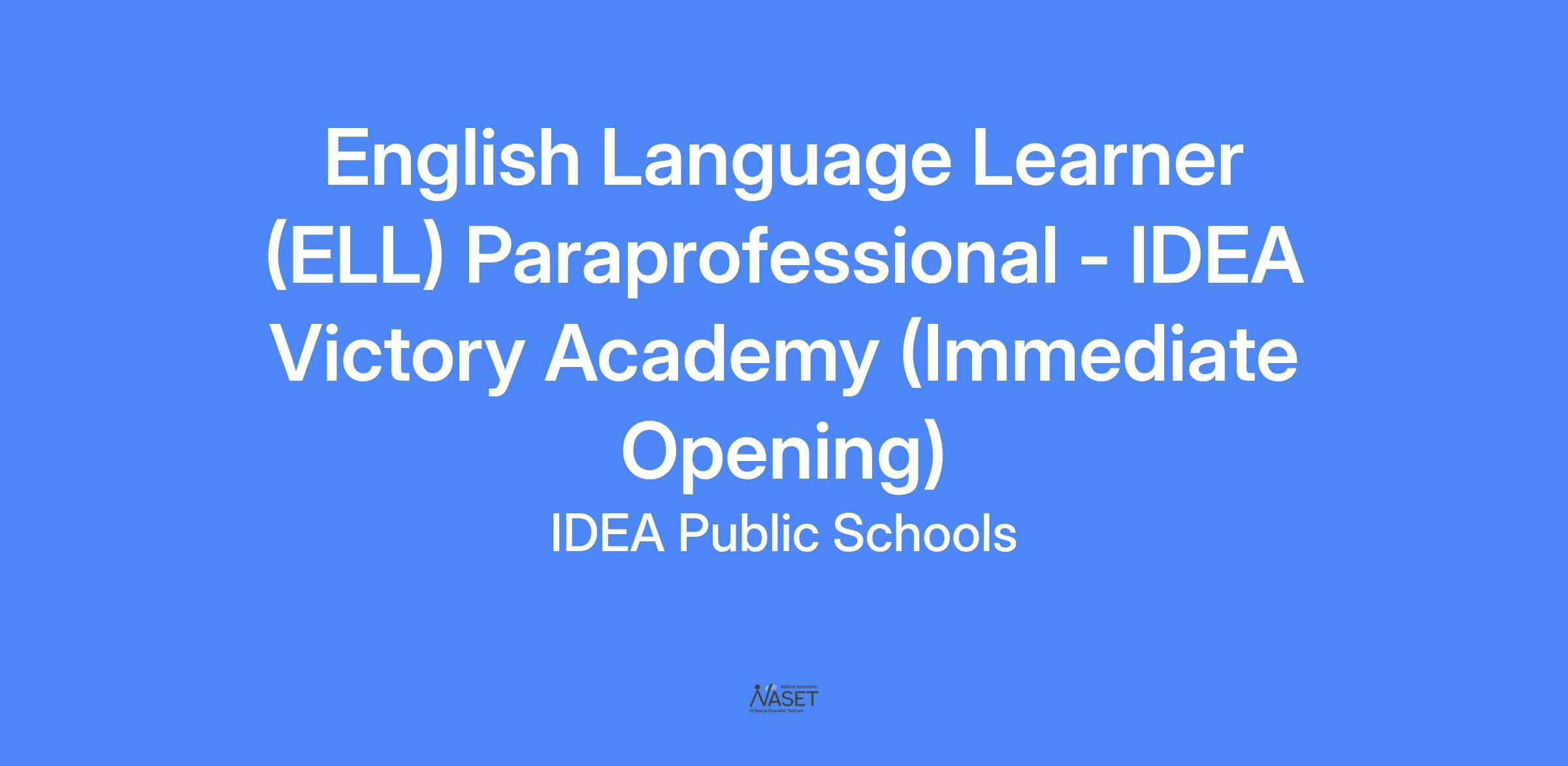 Role Mission: The English Language Learner (ELL) paraprofessional position is ideal for a bilingual candidate looking to gain valuable experience in Exceptional Student Education teaching, particularly when it comes to accommodations for our scholars who are still in the process of learning the English language and are currently operating at a limited English proficiency level. This position is also ideal for a candidate who has at least 30 college hours, wants challenging work, and is seeking the opportunity to advance in his or her education career.