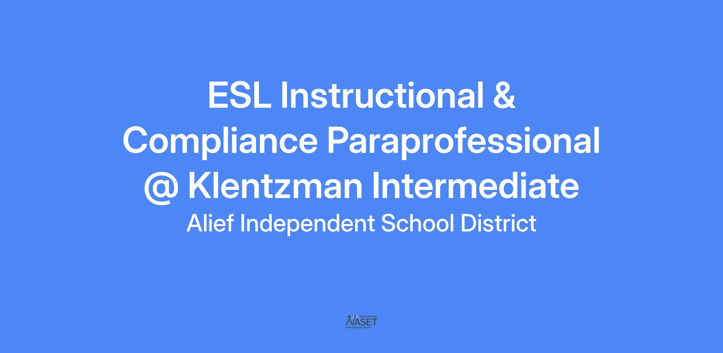 ESL Instructional & Compliance Paraprofessional @ Klentzman Intermediate
