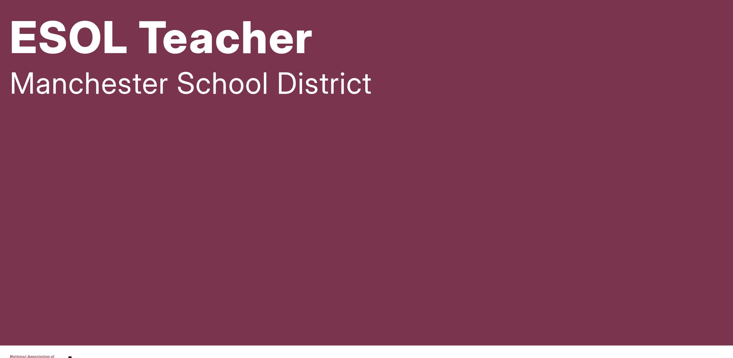 The Manchester School District (MSD) is committed to the development of a teaching faculty that represents the diverse identities of our students. We highly value effective educators of all backgrounds who acknowledge the critical role culturally sustained pedagogies have for all students.  MSD seeks an exceptional English as a Second Language (ESOL) teacher. This is an exciting opportunity for teachers who are committed to serving in high-needs schools. MSD is committed to a stance that sets high expectations for all students, equal access to higher learning opportunities and achievement to promote both academic and English proficiency for English learners aimed at closing the achievement gap.
