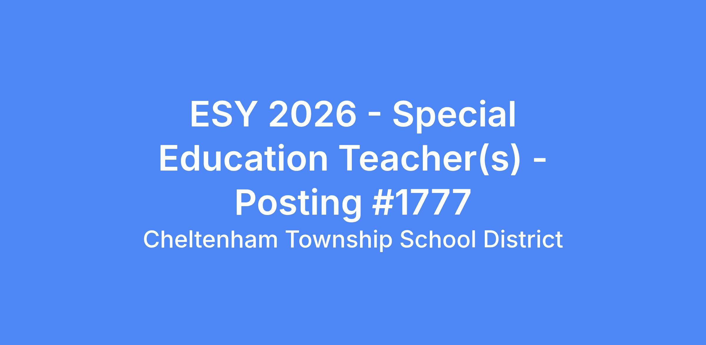 All applicants: Must complete the on-line application to be considered for this position, which is located under Employment Opportunities at www.cheltenham.org.