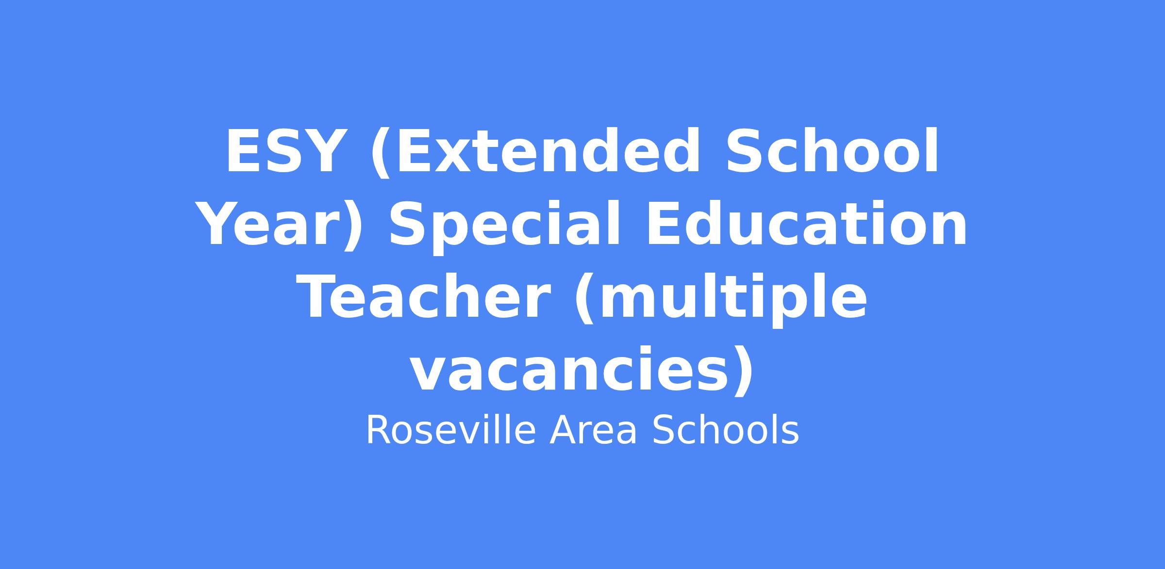 Description: Roseville Area Schools has vacancies for Special Education Teachers throughout the district for Extended School Year (ESY). ESY dates are June 22, 2026 - July 16, 2026 (Monday-Thursday).