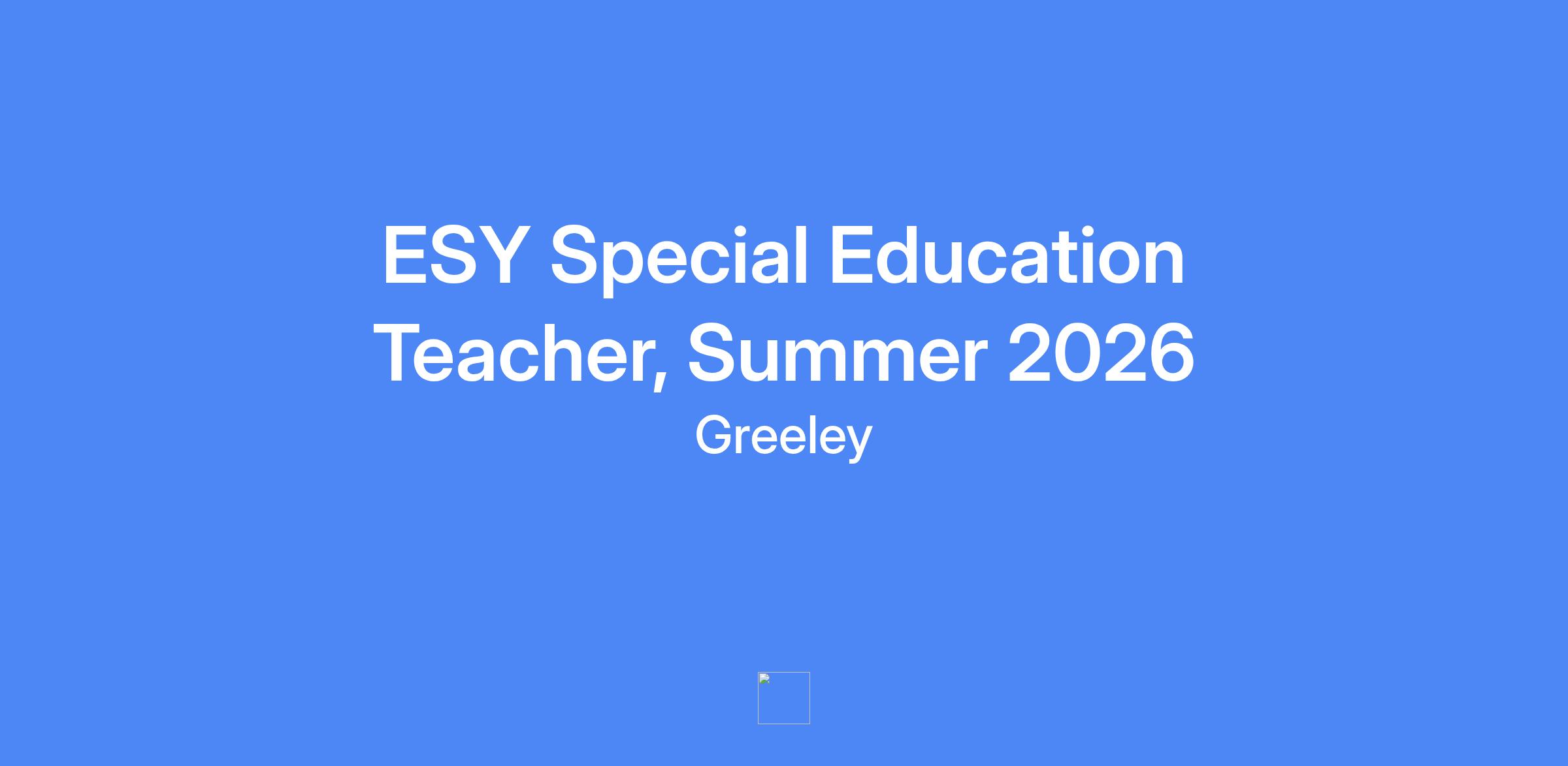ESY Special Education Teacher, Summer 2026 Classification: Exempt