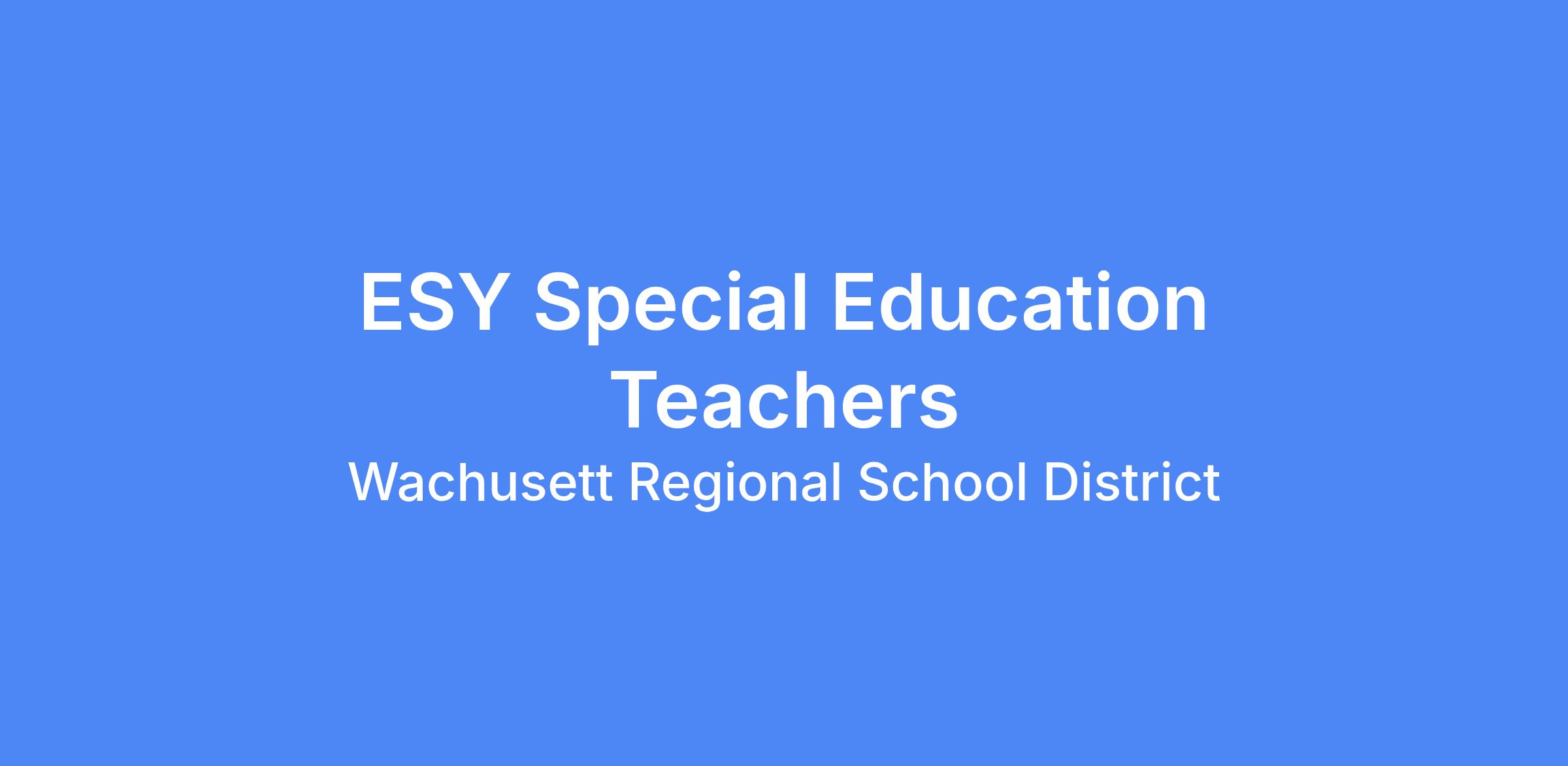 POSITION: Extended School Year - Special Education Teachers