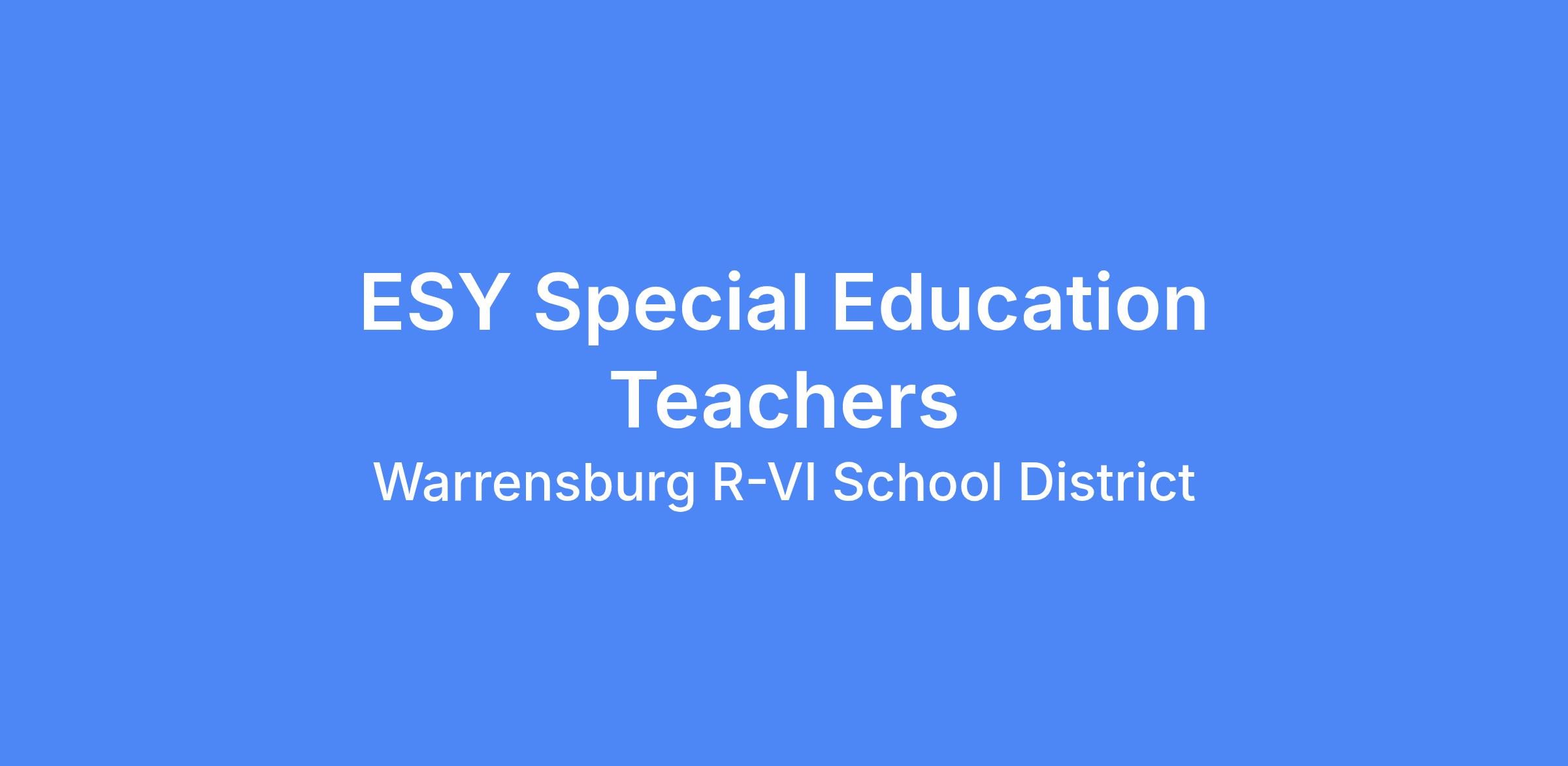 | Position: | ESY Special Education Teacher |