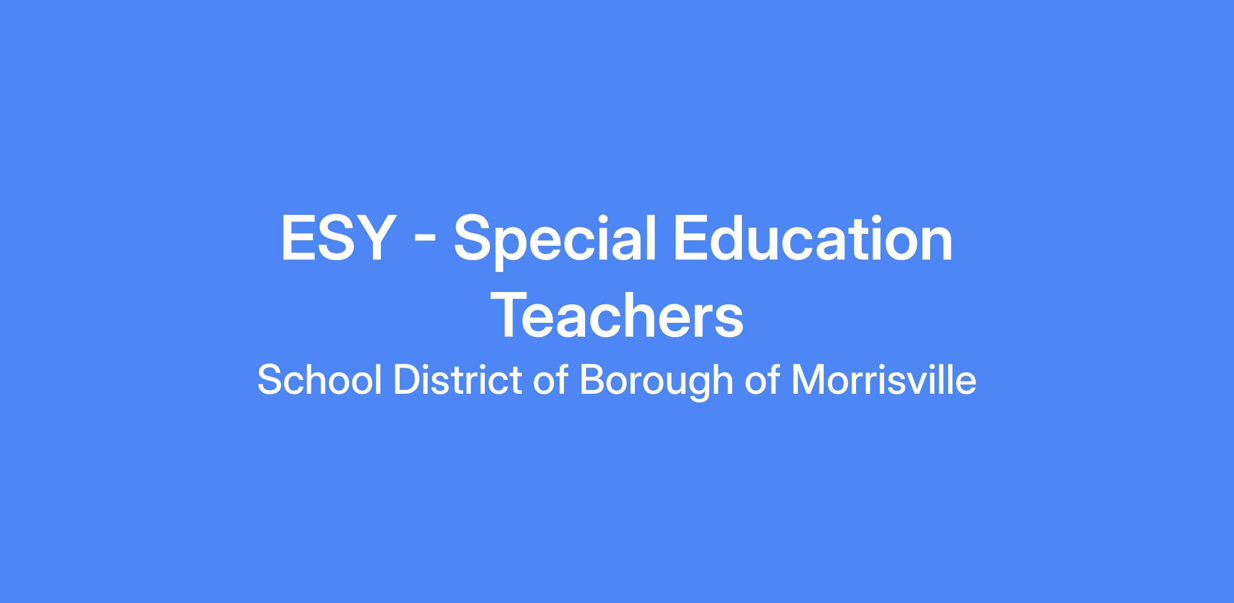 The School District of Borough of Morrisville is seeking special education teachers to join our team for the 2026 Extended School Year (ESY) program.