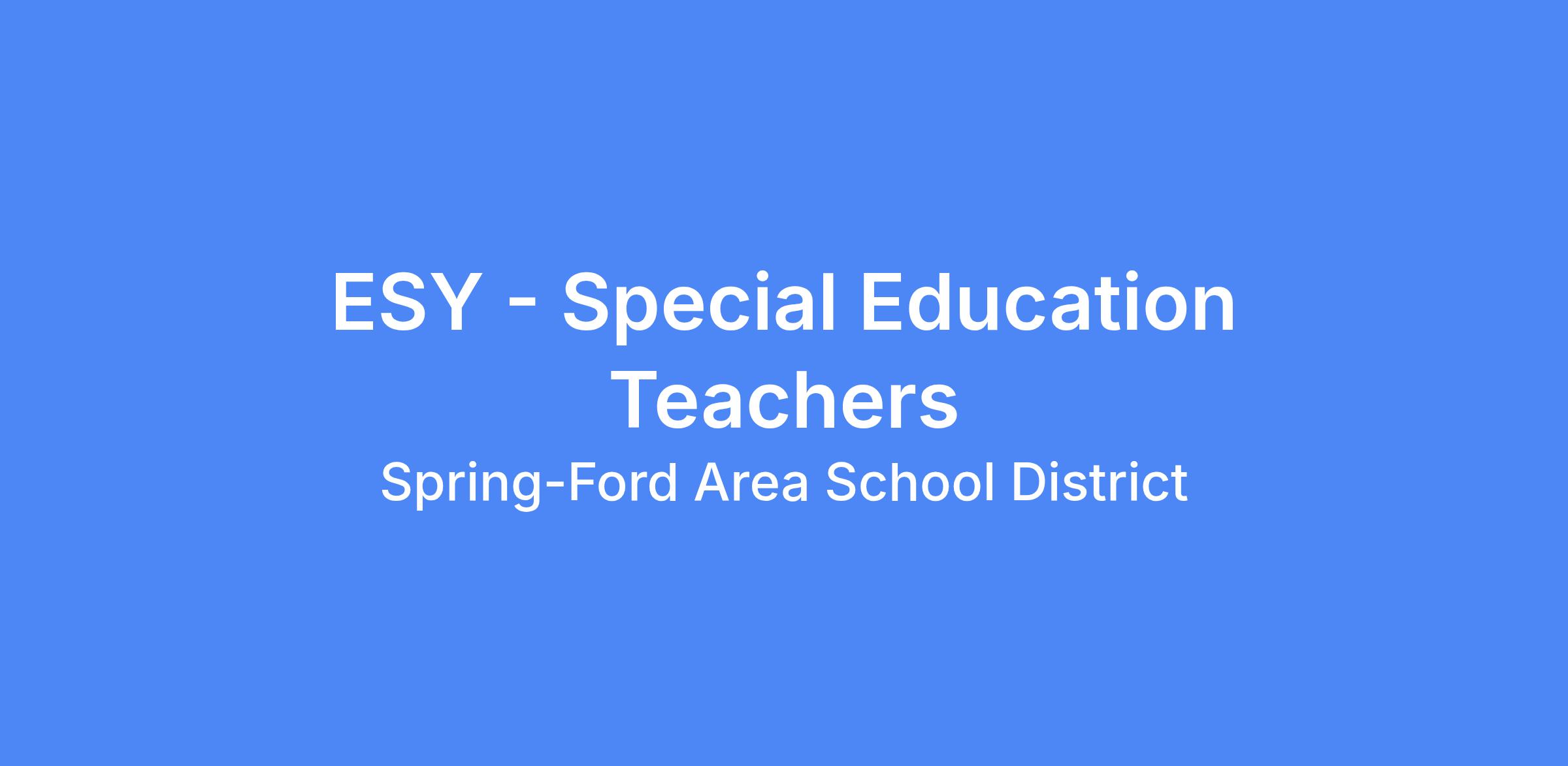 Extended School Year - Special Education Teachers