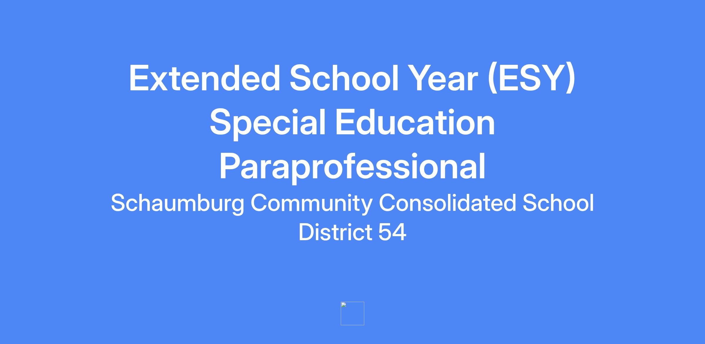 Special Education Paraprofessional positions are available for the District 54 Extended School Year (ESY) program. Staff orientation will be held on Monday, June 1, 2026, with students attending June 2, 2026 - July 8, 2026. All Fridays and June 18 and July 2 are non-attendance days. Staff hours for ESY are 8:15am-11:45am.