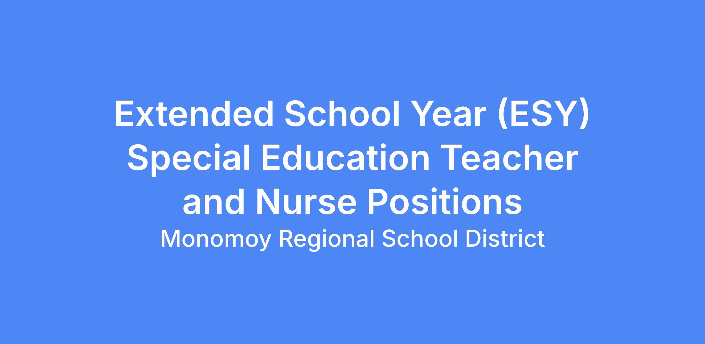 The Monomoy Regional School District is seeking Special Education Teachers and a Nurse for the 2026 Extended School Year program. Appropriate MA DESE licensure required and experience working with students with special needs.