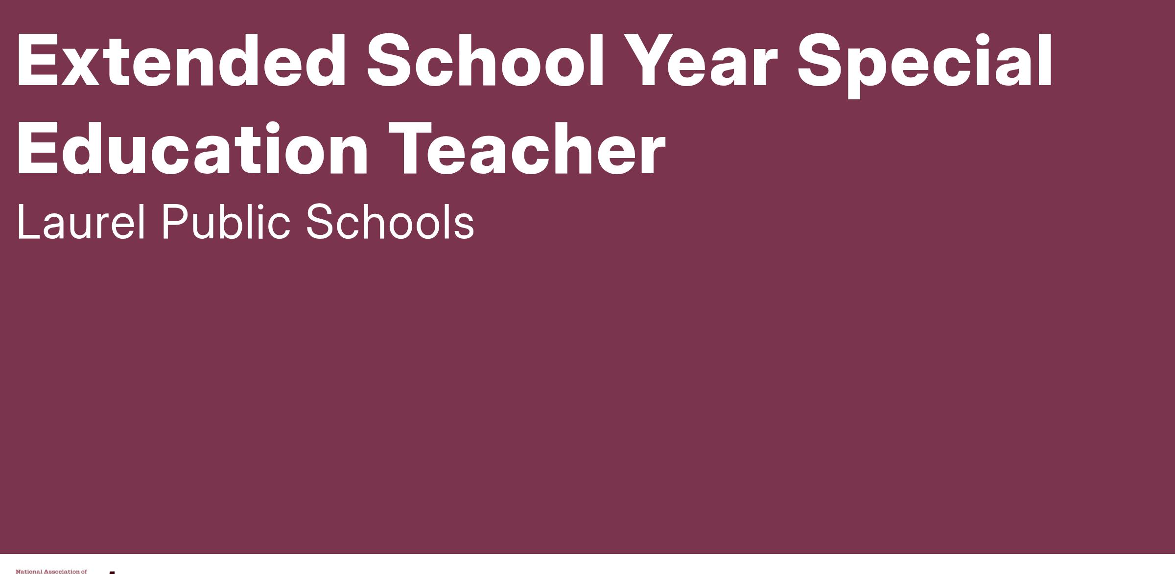 The Laurel School District is seeking qualified applicants for the position(s) of Extended School Year Special Education Teacher, for June 9, 2025 through July 3, 2025. This position will work 8 am to 1:30 pm, Monday through Friday.