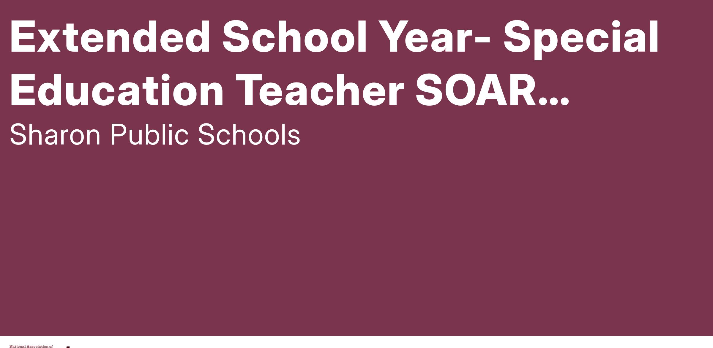 The Sharon Public Schools is seeking a special education teacher for students in the SOAR Extended School Year Program.