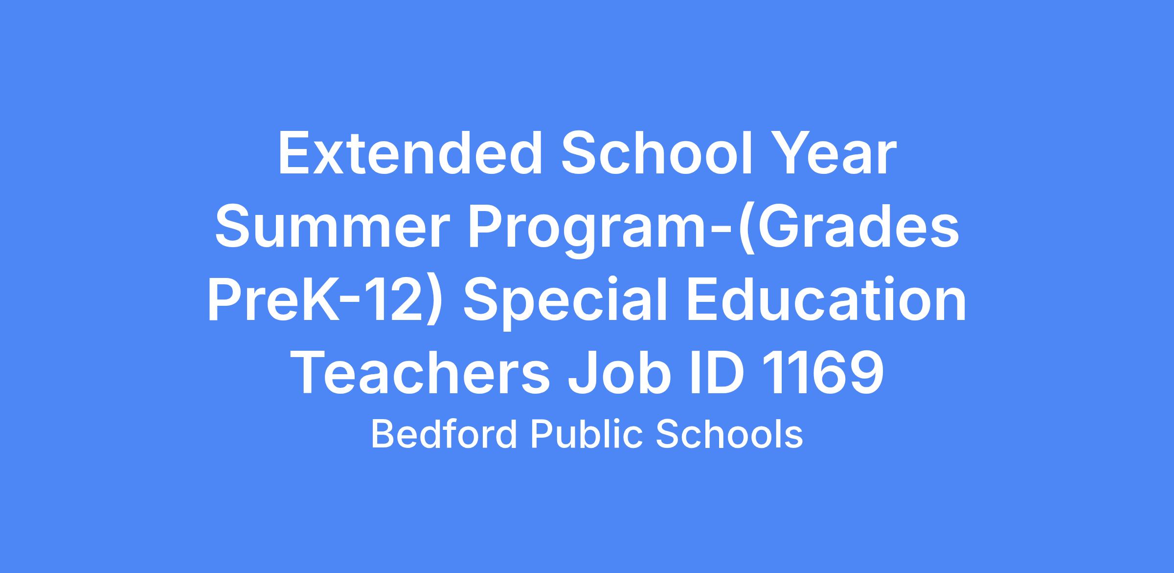 Extended School Year Summer Program-(Grades PreK-12) Special Education Teachers Job ID 1169