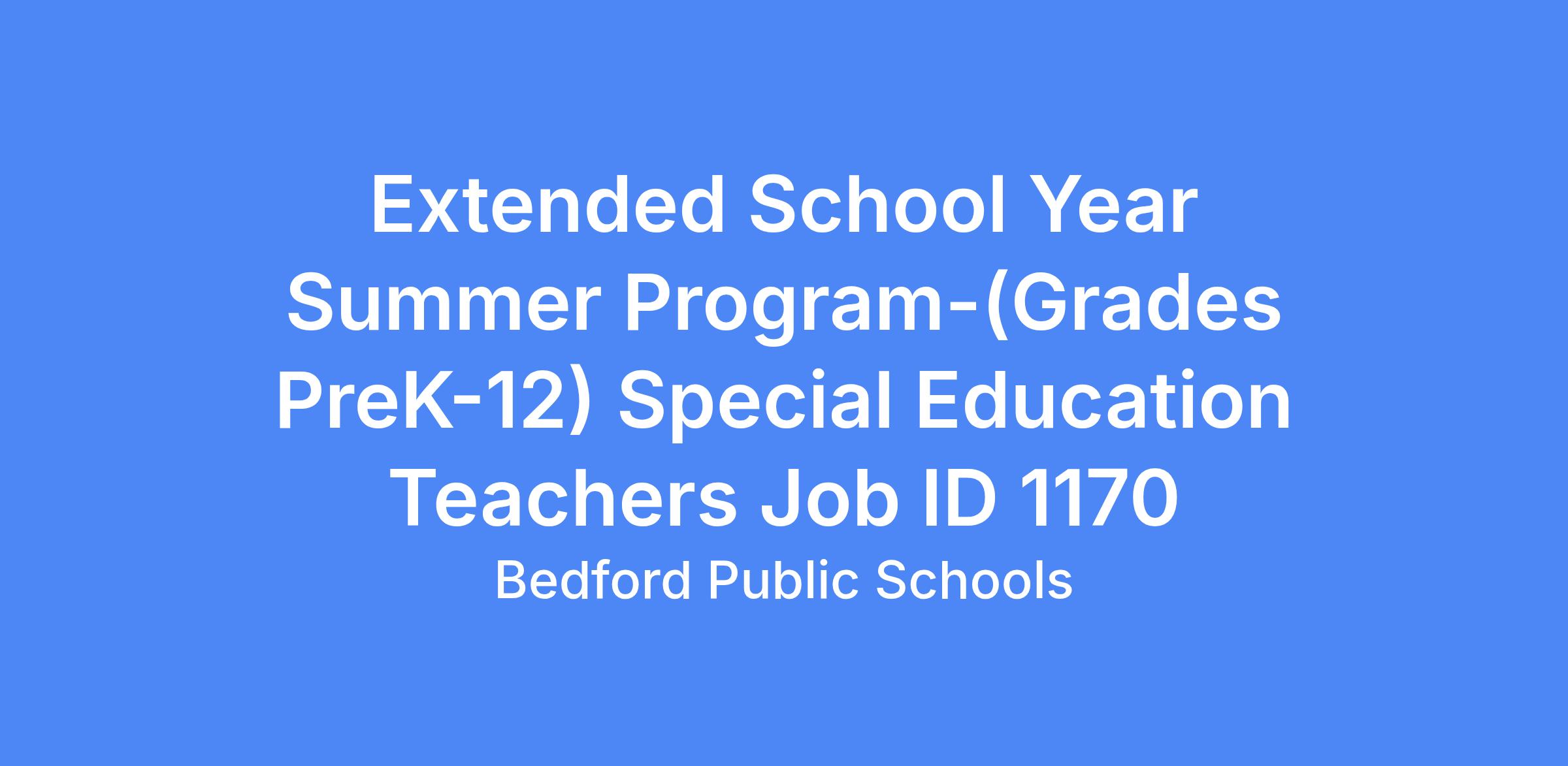 Special Education Teachers for Extended School Year Prepare and instruct students in small groups and individualized work for reading and math per IEP goals