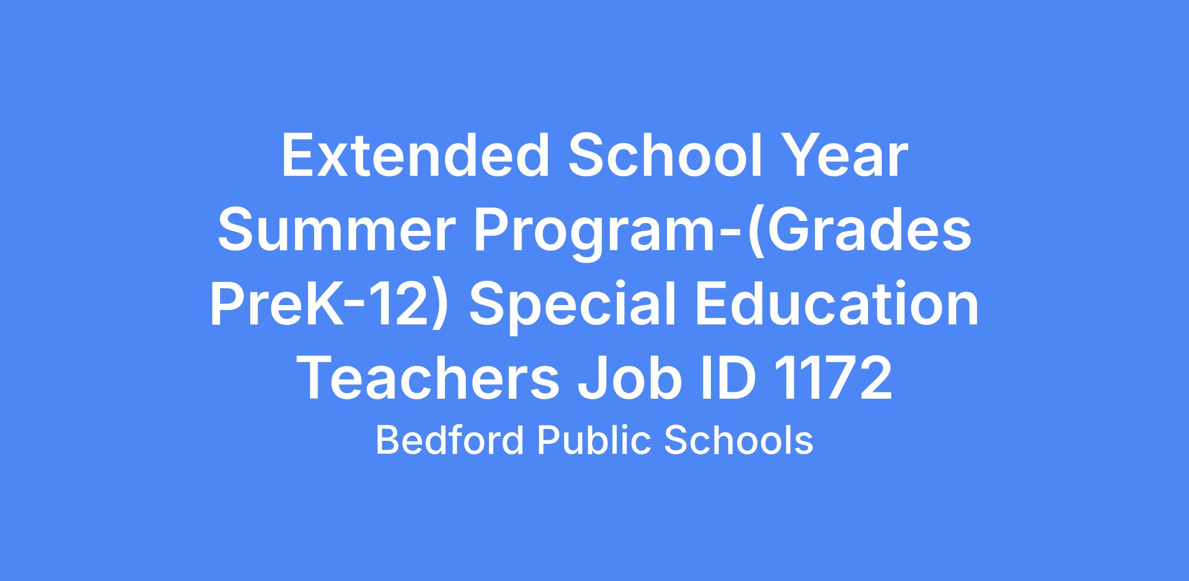 Special Education Teachers for Extended School Year Prepare and instruct students in small groups and individualized work for reading and math per IEP goals