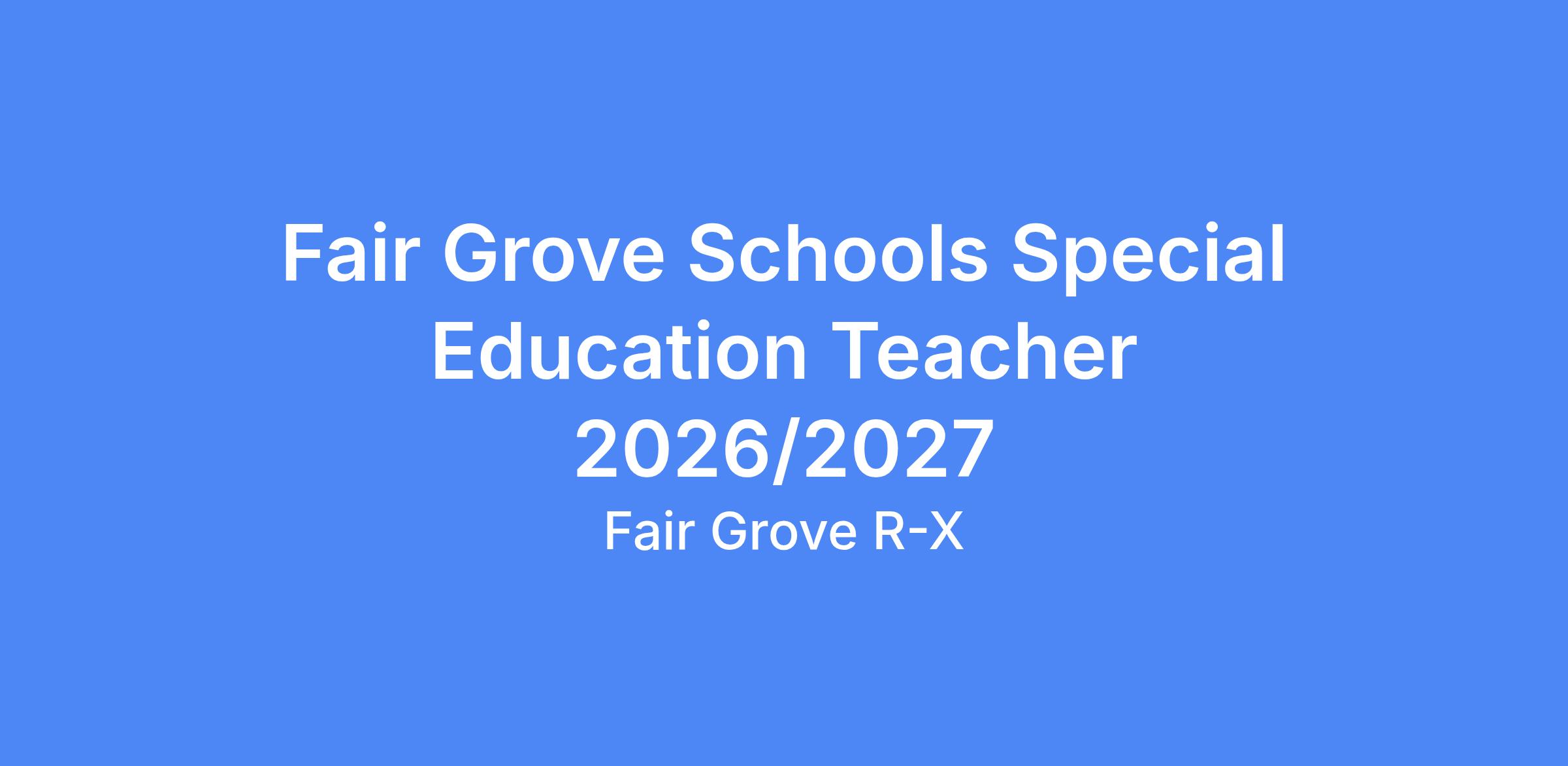 The Fair Grove R-X School District is accepting applications for a Special Education teaching position for the 2026–2027 school year. Applicants must hold a Missouri DESE certification in Cross Categorical K-12, or can obtain certification before the start of the school year. This position could offer coaching opportunities.